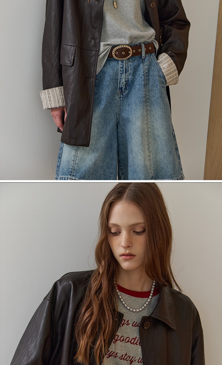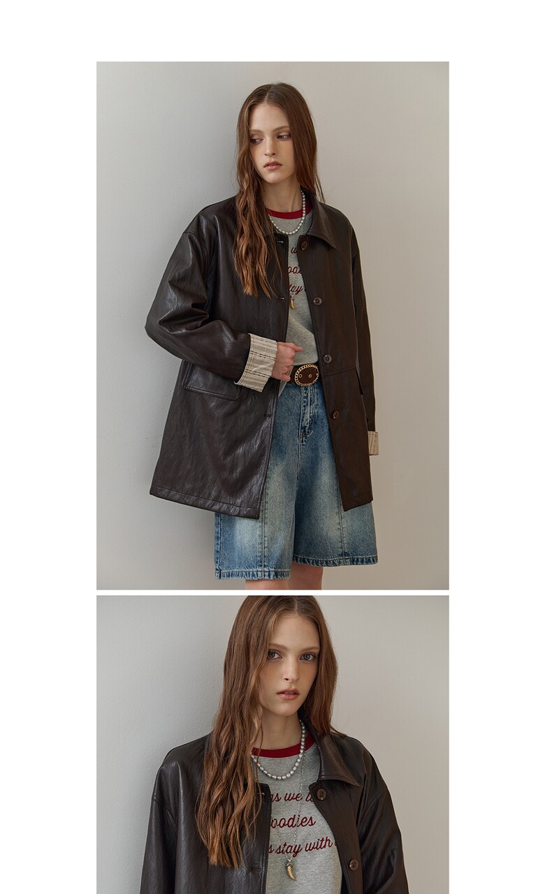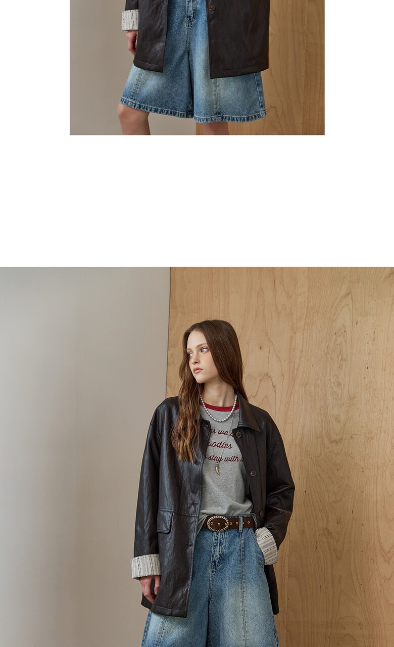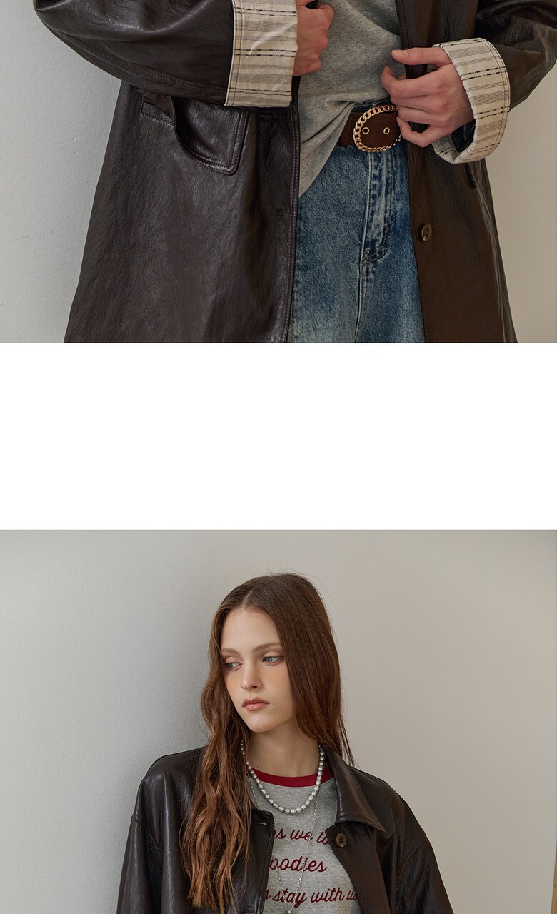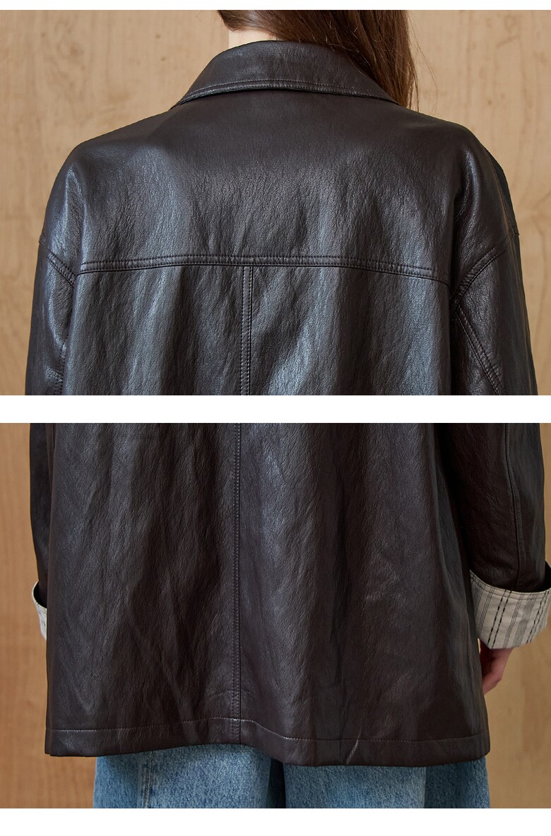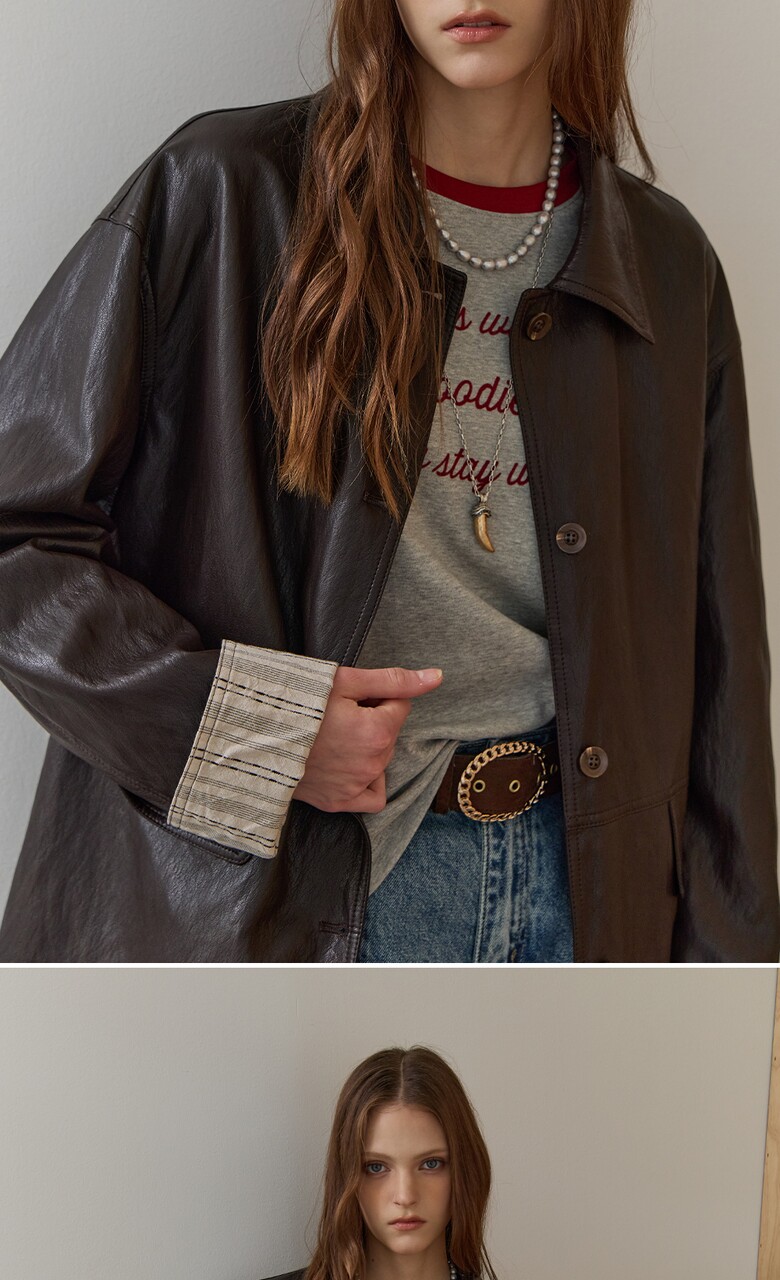 리얼 레더와 흡사한 질감의 부드러운 페이크 레더 소재로