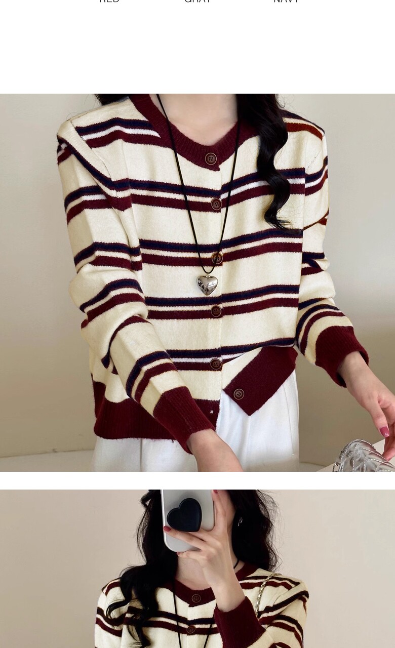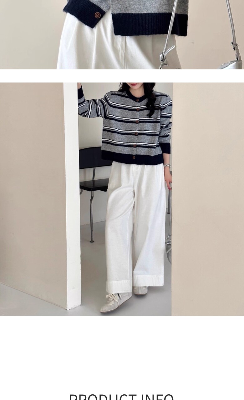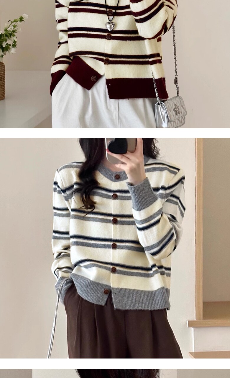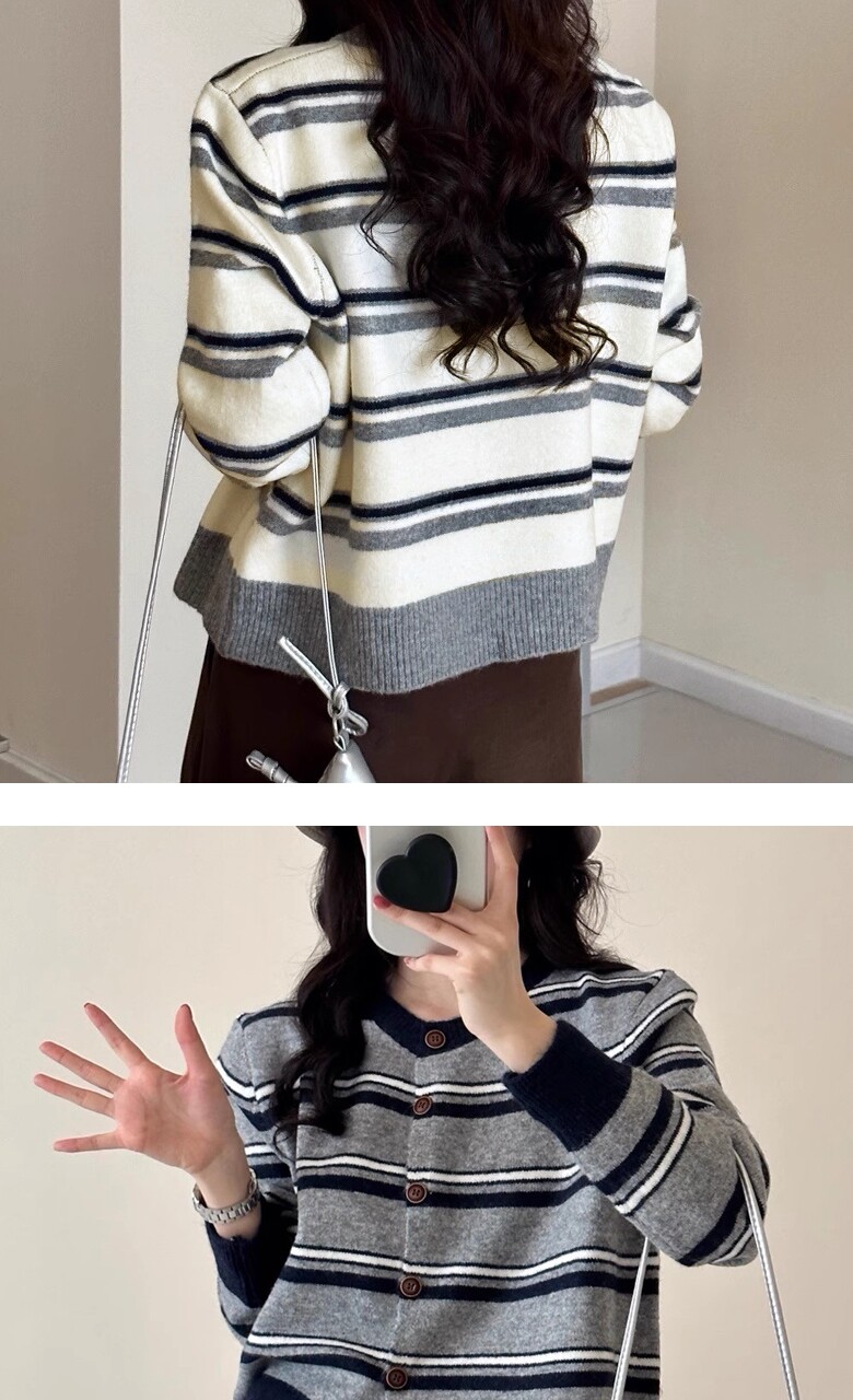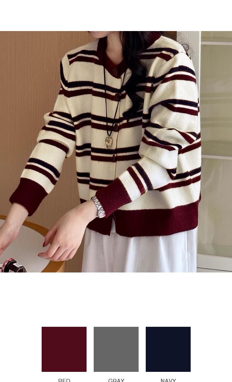 (귈림) 배색 스트라이프 루즈핏 니트 가디건(G5FCD067P)