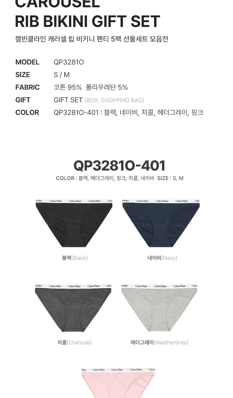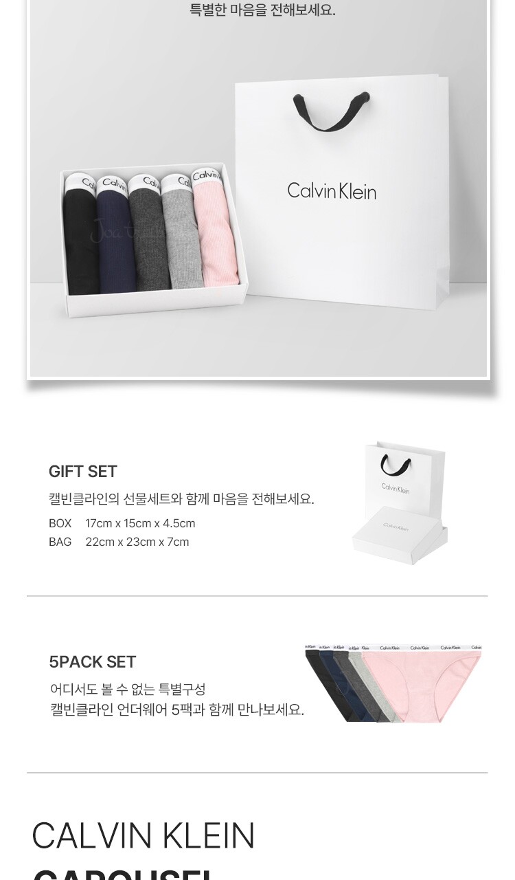 캘빈클라인 언더웨어 여자 속옷 5장 세트 팬티 면 QP3281O-401 선물세트 패키지