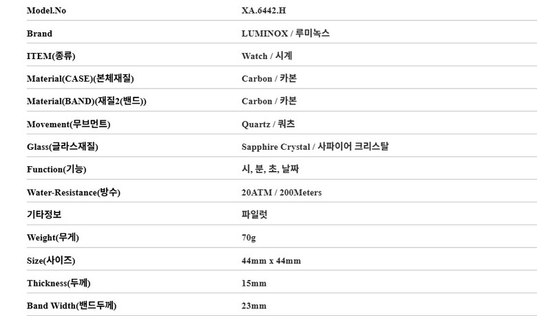 1. 소재 / 순도 / 밴드재질 | 블랙/ 케이스 - 카본 / 밴드 - 카본 |
