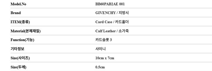 지방시 BB60PAB2AE 001 샤이니 카드지갑