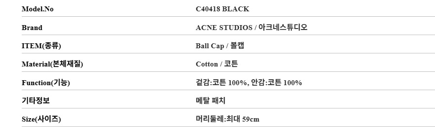 아크네스튜디오 C40418 BLACK 페이스 로고 메탈 패치 볼캡 모자
