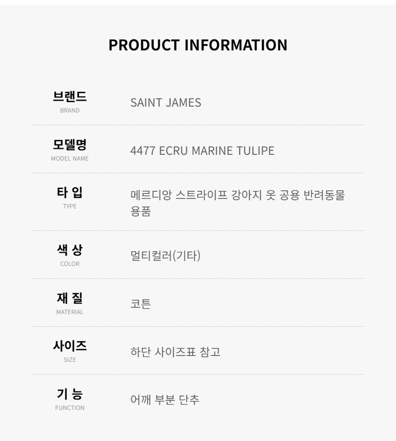 세인트제임스 4477 ECRU MARINE TULIPE 메르디앙 스트라이프 강아지 옷 반려동물 용품
