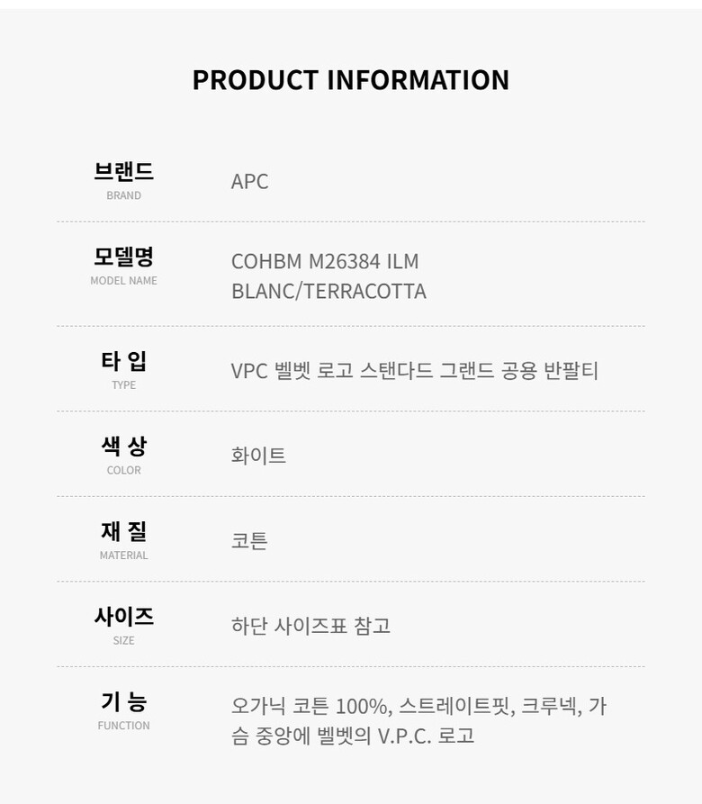 아페쎄 COHBM M26384 ILM BLANC/TERRACOTTA VPC 벨벳 로고 스탠다드 그랜드 공용 반팔티