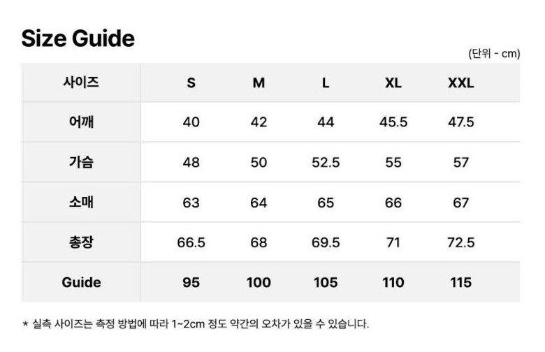 사이즈 : 95(S),100(M),105(L),110(XL),115(XXL)