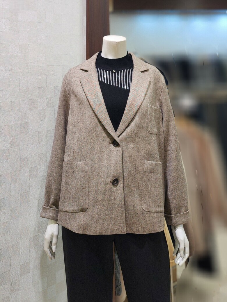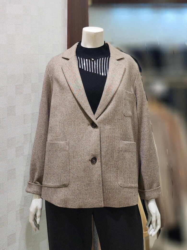 잔잔한 헤링본 패턴의 루즈핏 자켓.