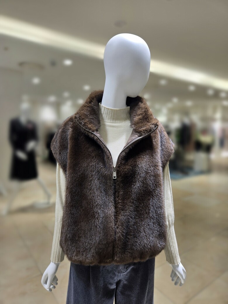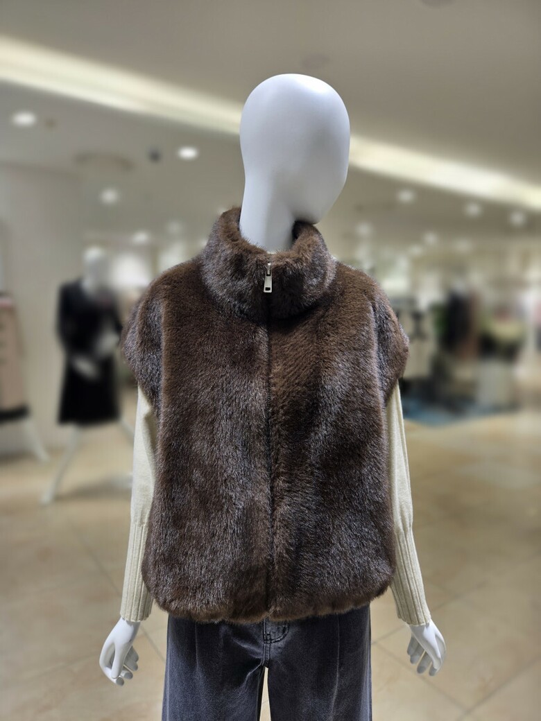 [올리브데올리브] 에코 밍크 하이넥 집업 베스트 YM5SV203
