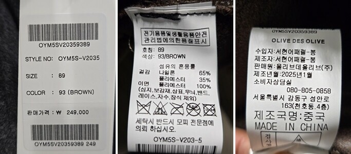 · 안감 : □ 전체 □ 부분 ■ 없음