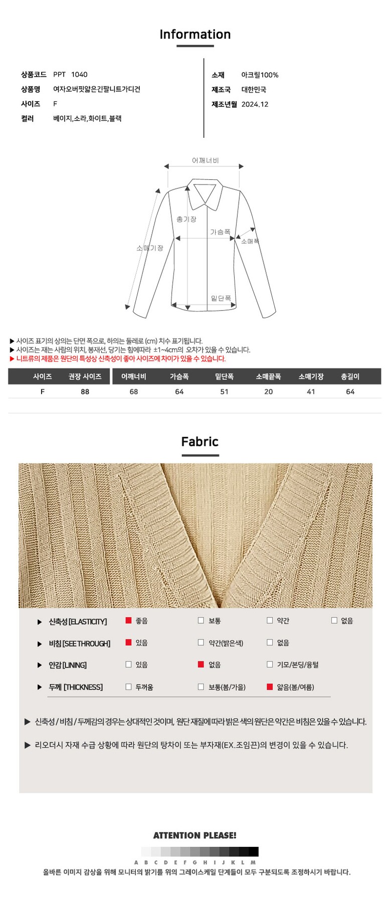 여성 오버핏 얇은 긴팔 니트 가디건 왕단추 스웨터 베이직 간절기