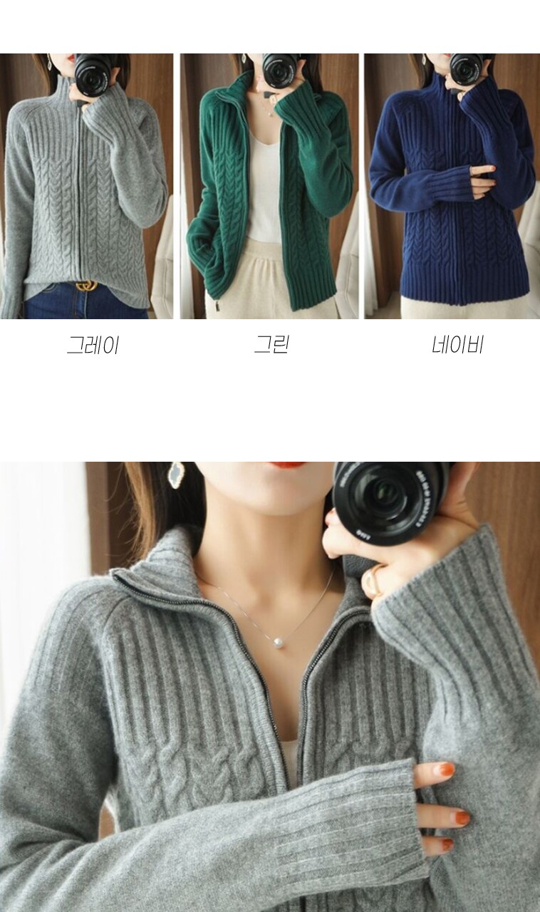 여성 예쁜 니트 짜임 도톰 집업 가디건 여성 아우터 가을 점퍼 캐주얼