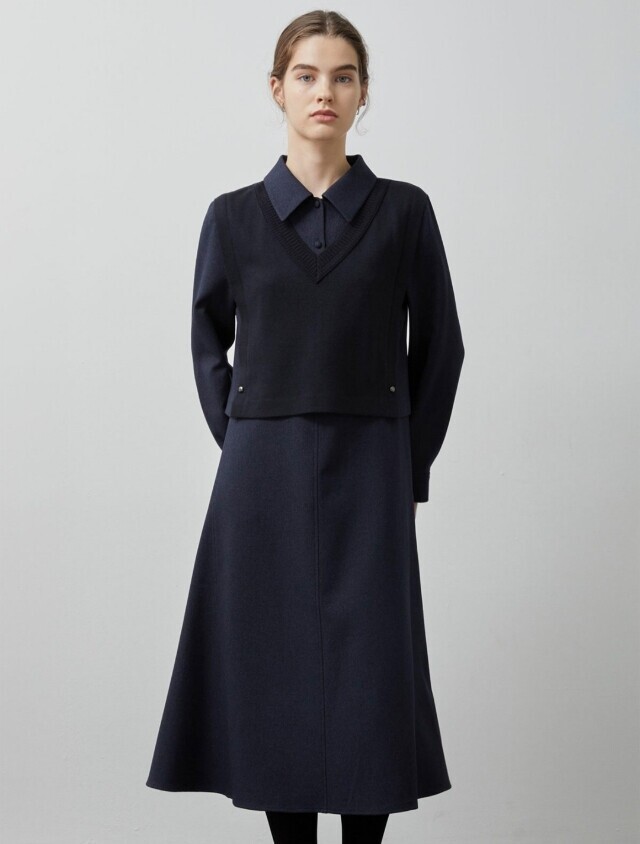 [올리비아로렌]니트 콤비 원피스VOPOA4W9231