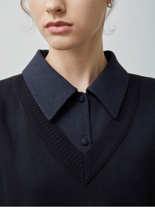 편안한 실루엣의 니트 콤비형 원피스입니다