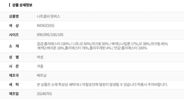 | 6. 세탁방법 및 취급시 주의사항 | 상품상세참조 |