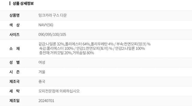 | 6. 세탁방법 및 취급시 주의사항 | 상품상세참조 |
