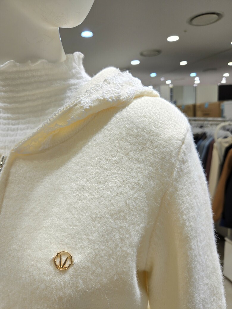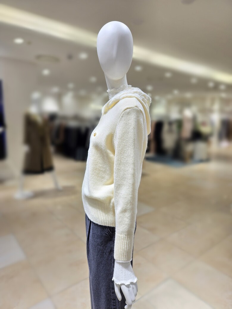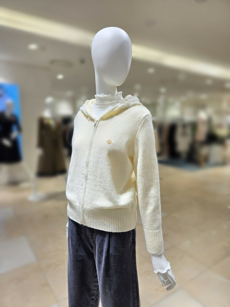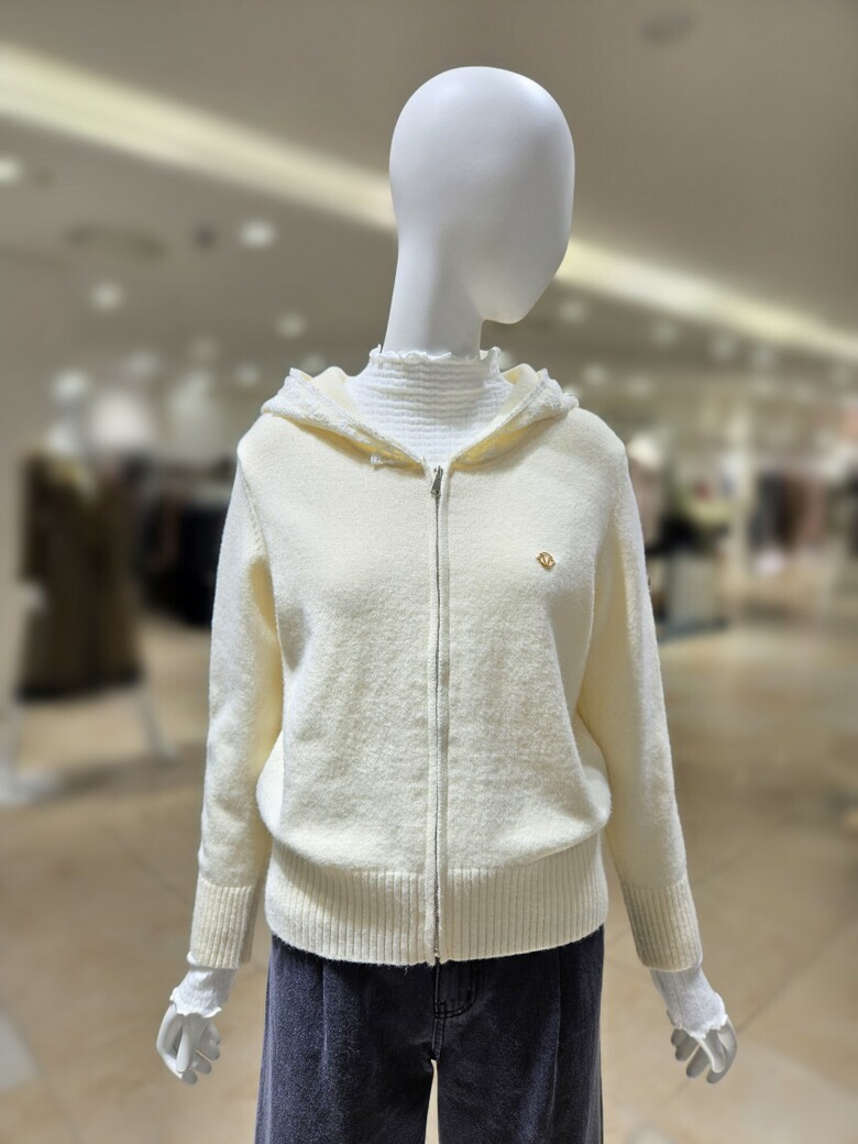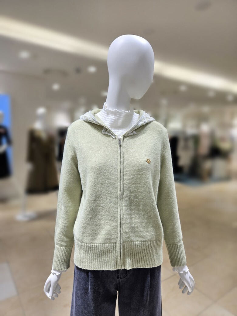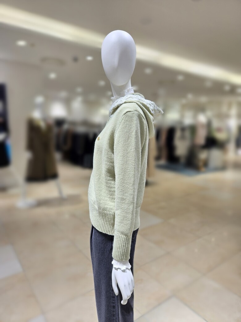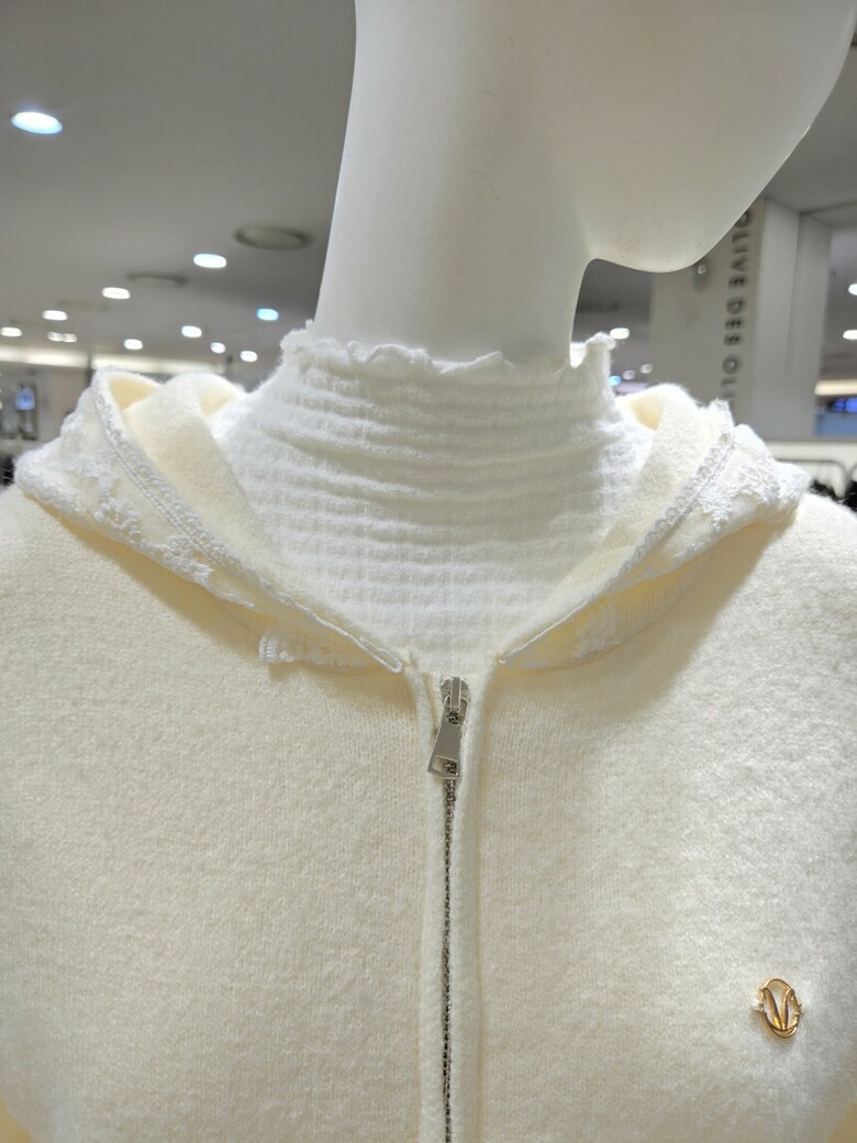 [올리브데올리브] 후드 레이스 배색 니트 집업 가디건 YK5SD421