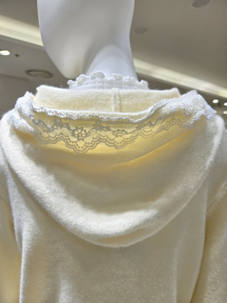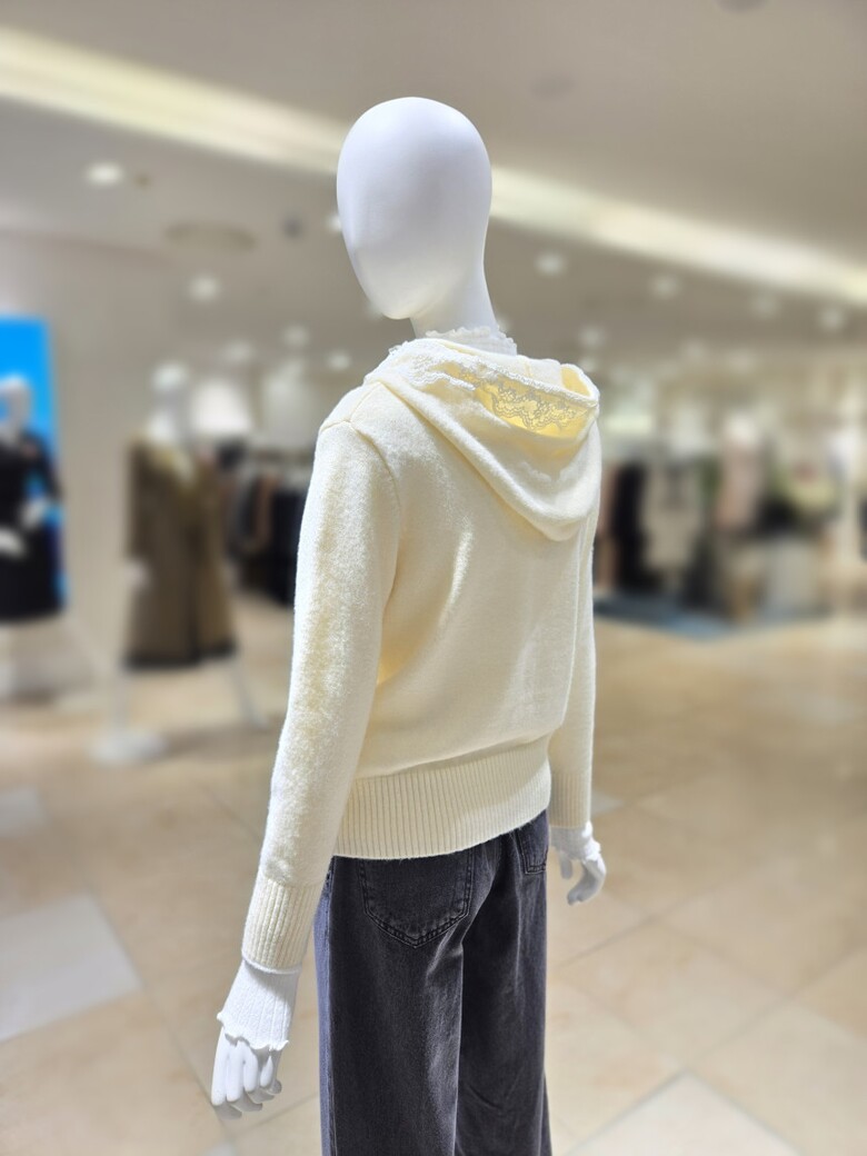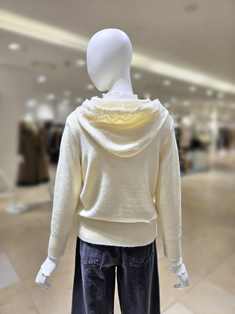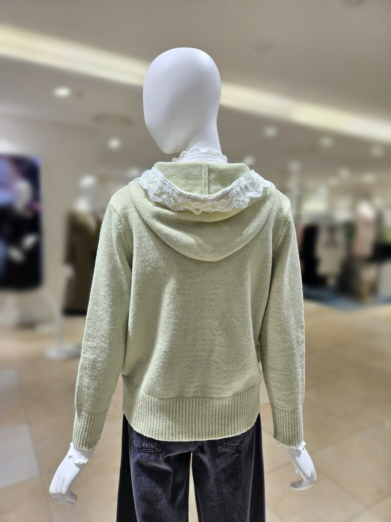 후드 레이스 배색 니트 집업 가디건 YK5S-D421