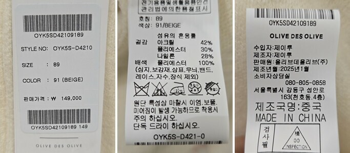 · 취급 시 주의사항 : 원단특성상 마찰시 이염,보풀,미어짐이 발생 가능하므로 착용시 주의 하십시오.