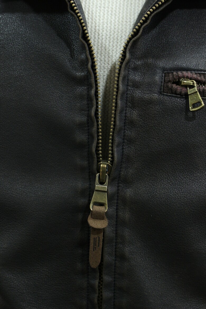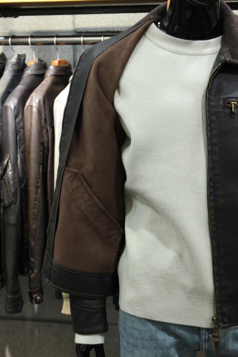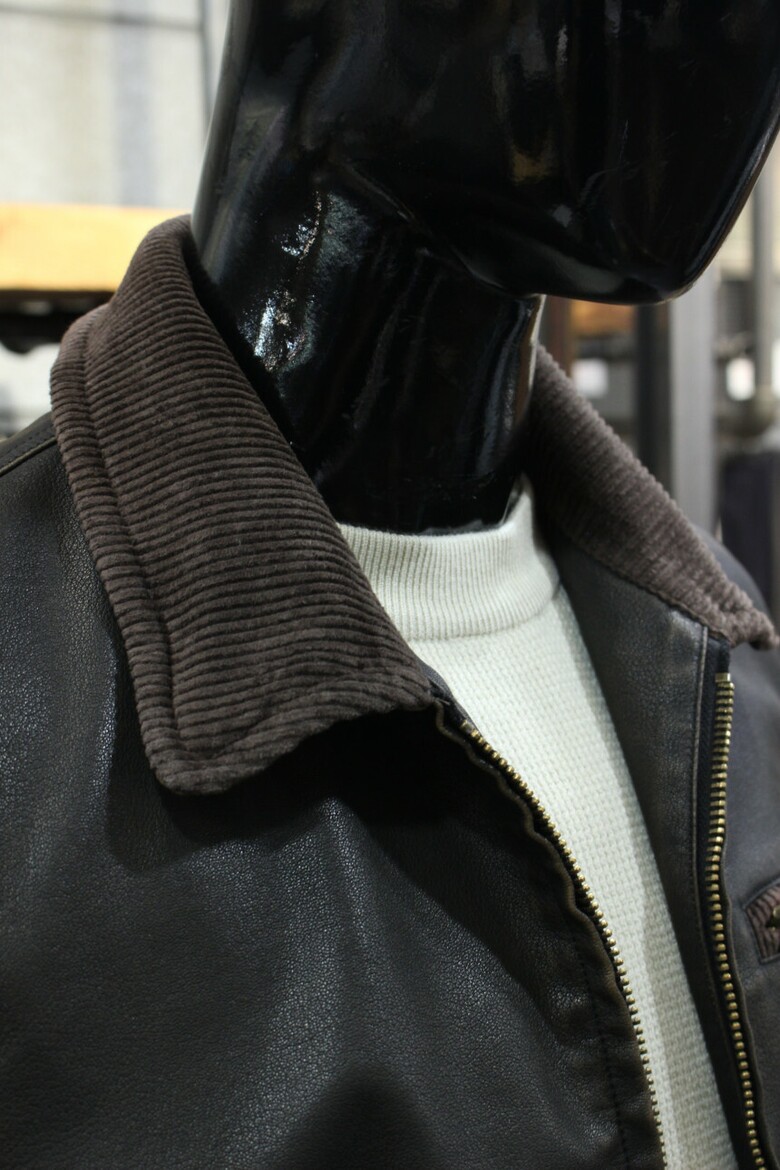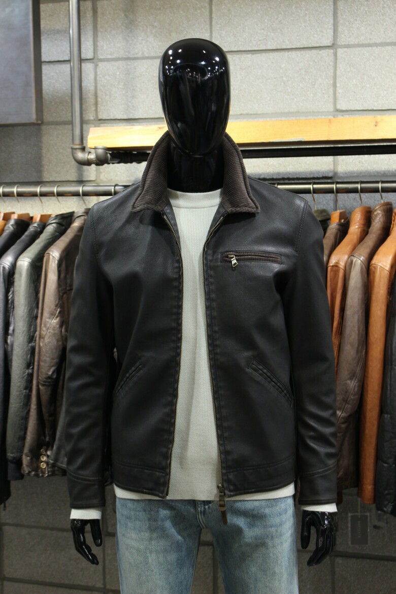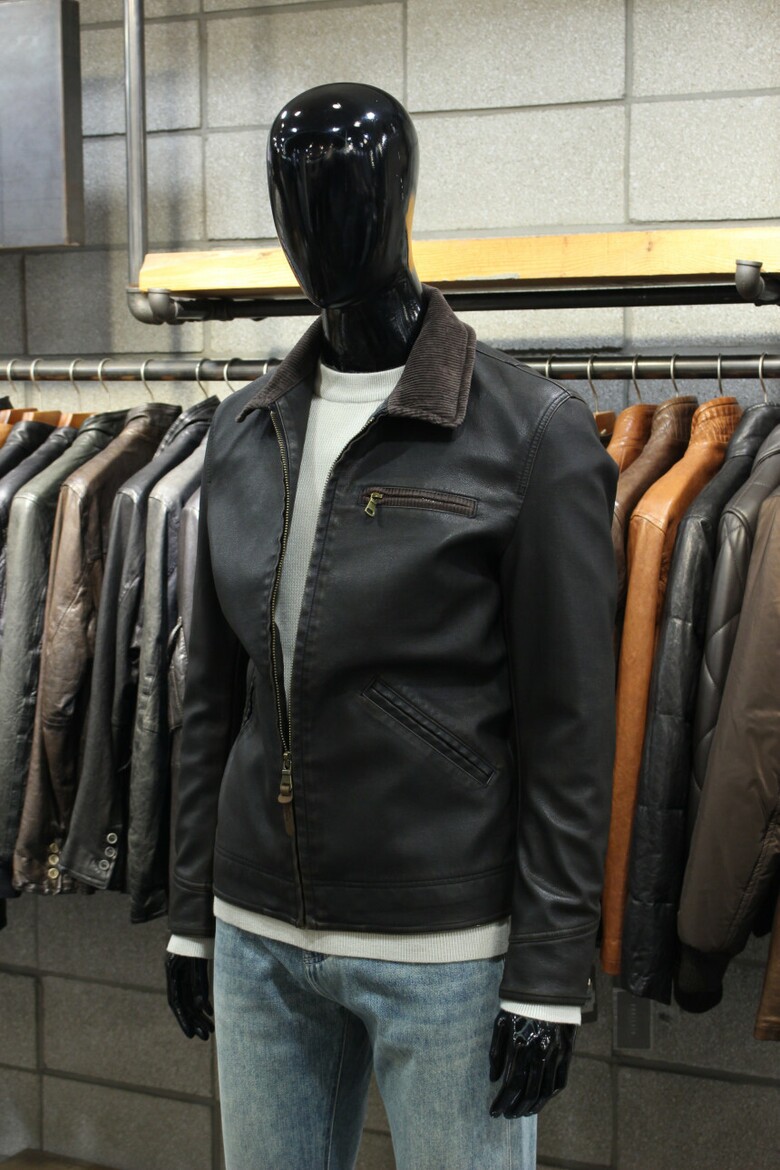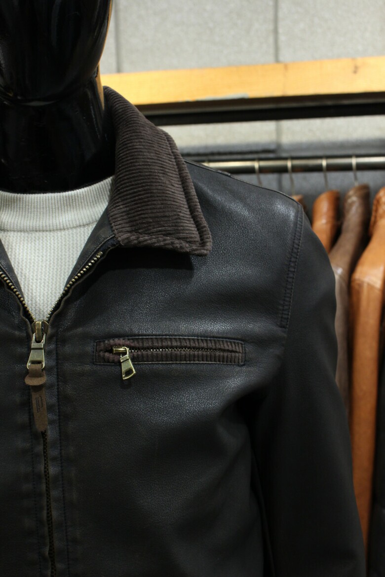 빈티지브라운블랙 에코레더 코듀로이배색자켓 m-qpjp50br