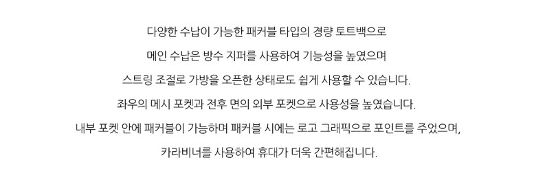 • 표시/광고와 상이, 제품 하자의 경우 수령 후 3개월 이내, 또는 그 사실을 안 날로부터 30일 이내 교환/반품 가능합니다.