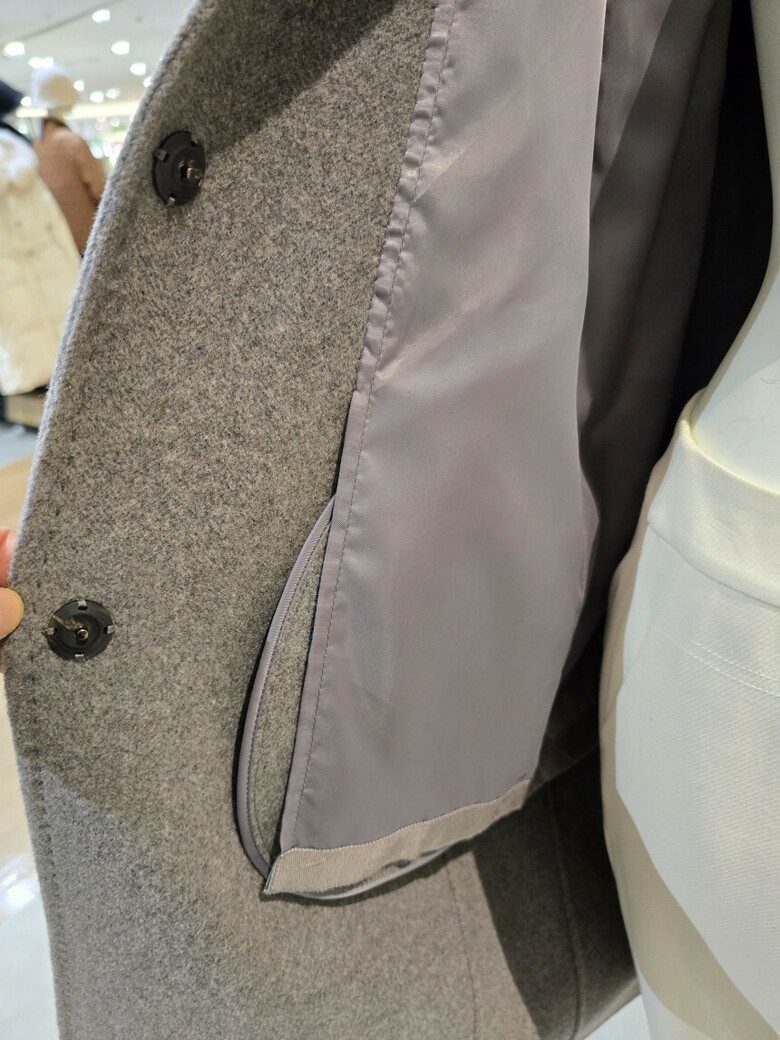 | 1. 제품 소재 (섬유의 조성 또는 혼용률을 백분율로 표시, 기능성인 경우 성적서 또는 허가서) | 겉감:모75%, 폴리에스테르14%, 캐시미어 5%, 레이온 2%, 나일론 2%, |