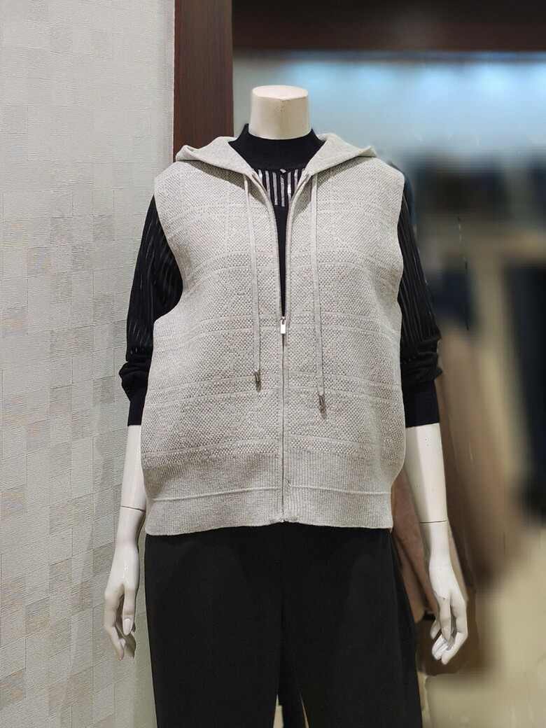 [벨라디터치] V9F4VT23 루즈핏 후드집업 니트 조끼
