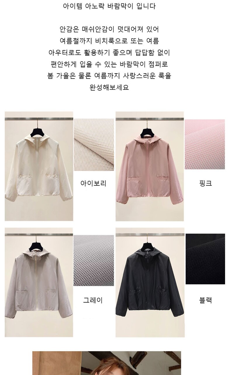 후드 매쉬 안감 러블리 아노락 바람막이 집업 점퍼 잠바 여름 자켓 비치 봄 가을