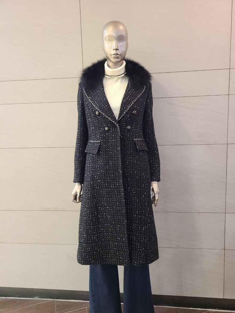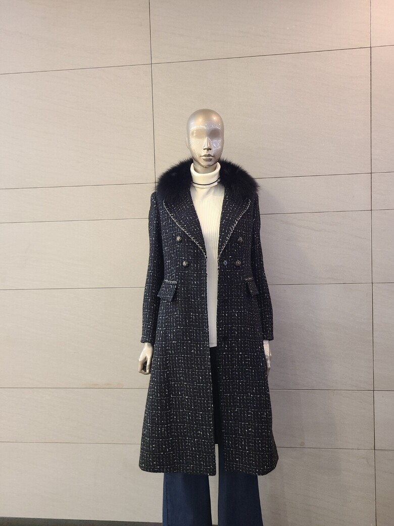 폭스카라 트위드 롱 코트 JAEW1-WCH330