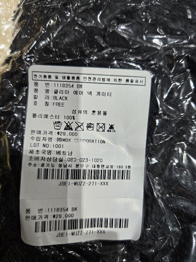 6. 취급시 주의사항 JBWHWMDJ08Tag 고리등의 날카로운 부분으로 인해 부상을입을 우려가 있으니 착용전 반드시 제거해 주세요.