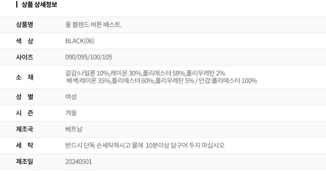1. 제품 소재 (섬유의 조성 또는 혼용률을 백분율로 표시, 기능성인 경우 성적서 또는 허가서) 상품상세참조