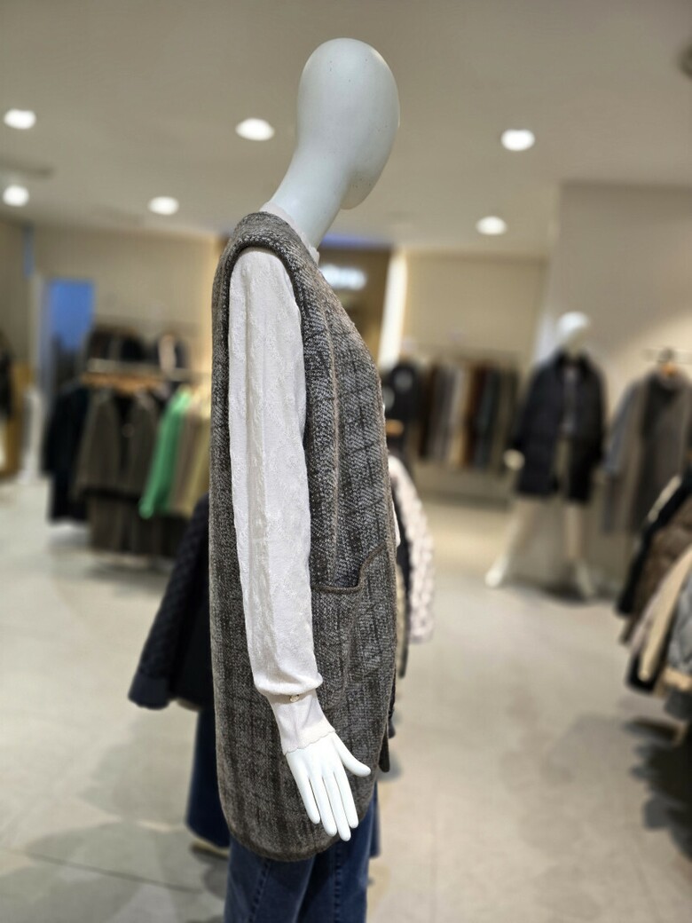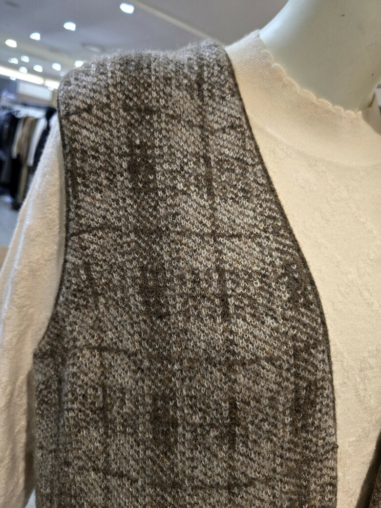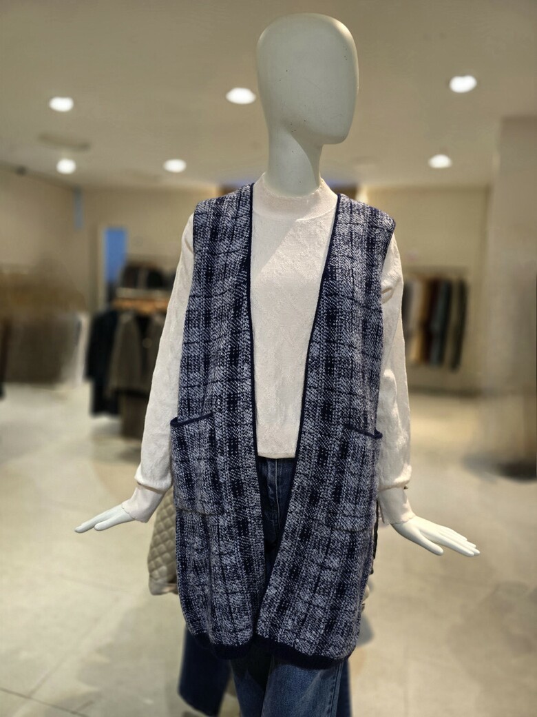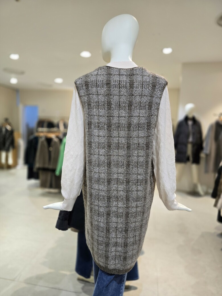 캐리스노트-체크 롱 니트조끼(CN1WKVA05)