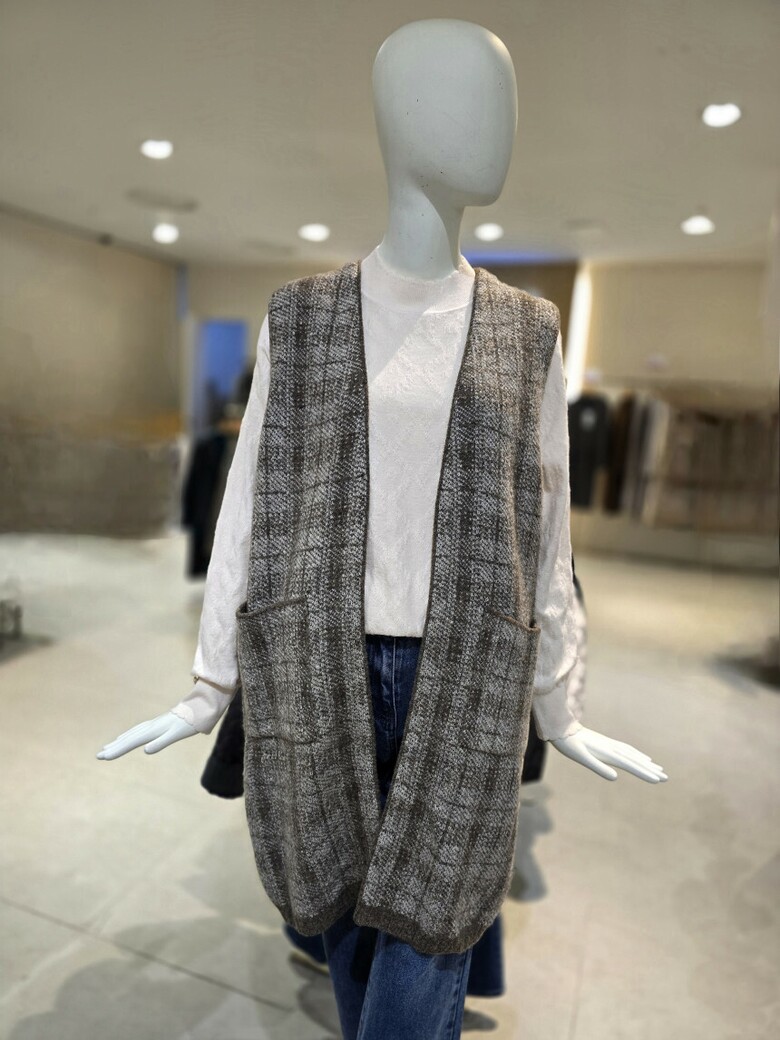 캐리스노트-체크 롱 니트조끼(CN1WKVA05)