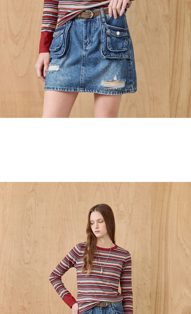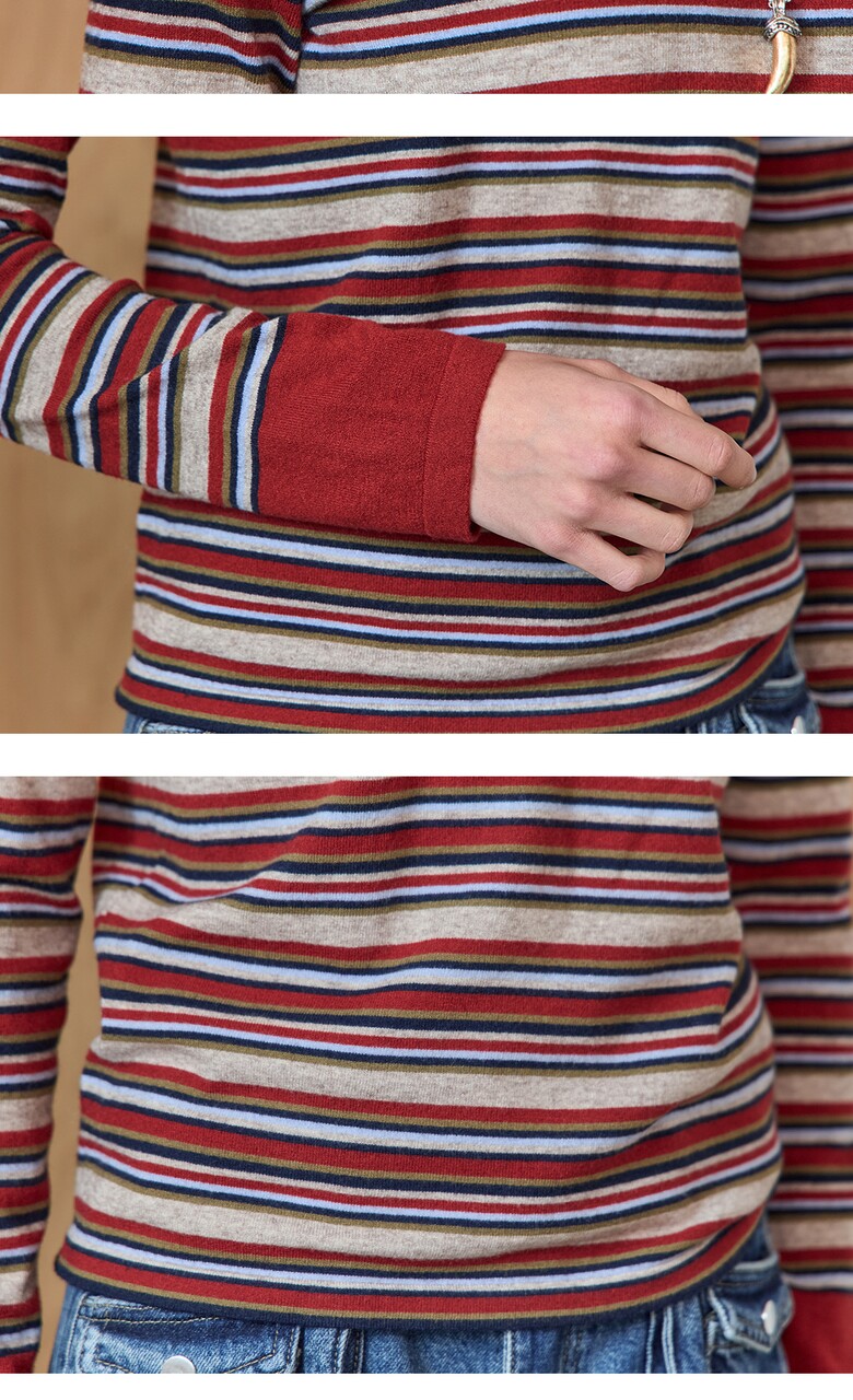 컬러 믹스 스트라이프 배색 라운드넥 니트