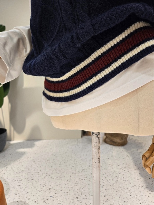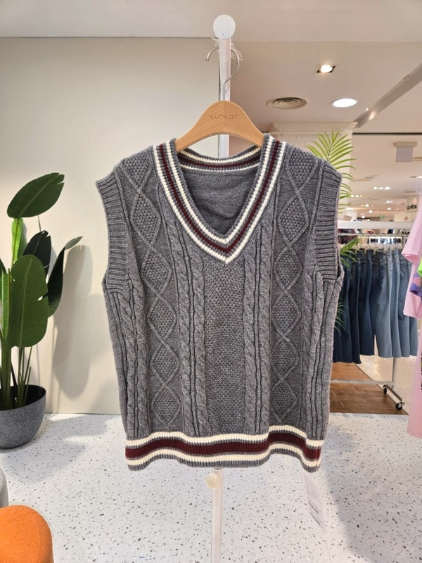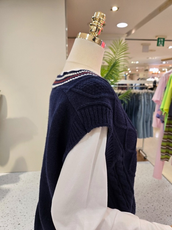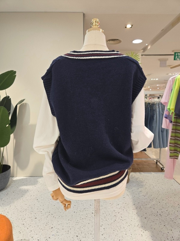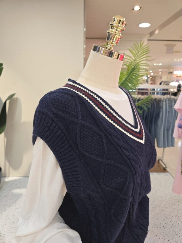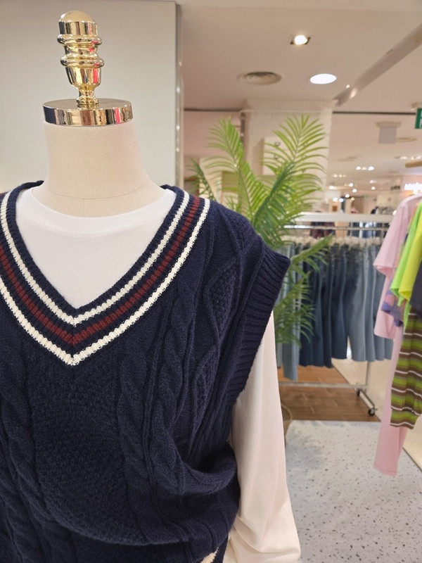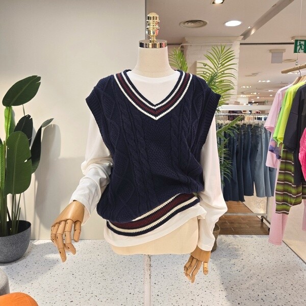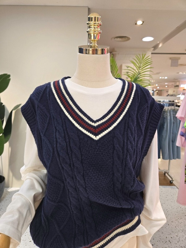 C25J7FVE014_포인트 브이넥 배색꽈조끼