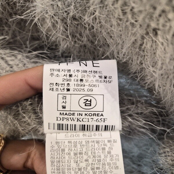 세탁방법 및 취급시 주의사항 : 드라이하세요