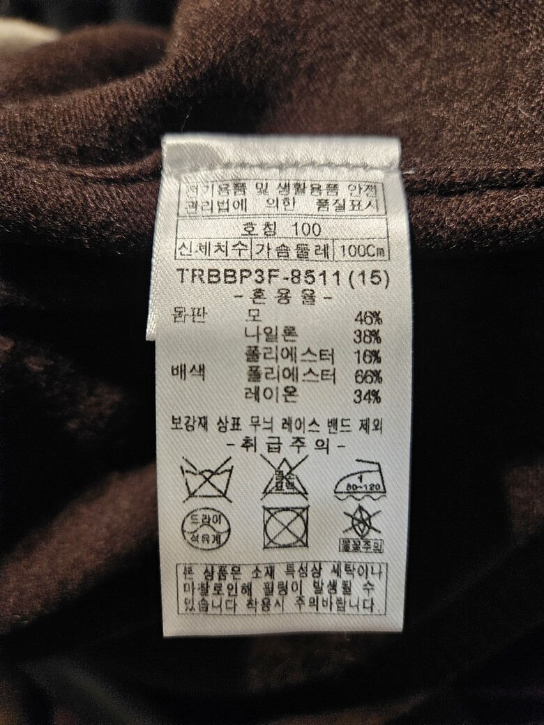 | 6. 세탁방법 및 취급시 주의사항 | 드라이클리닝을 해야 하며, 용제의 종류는 석유계에 한한다. |
