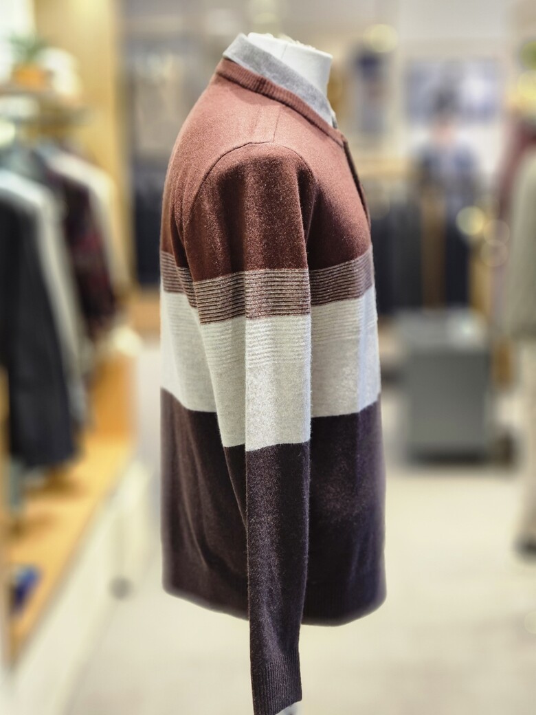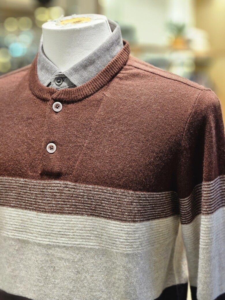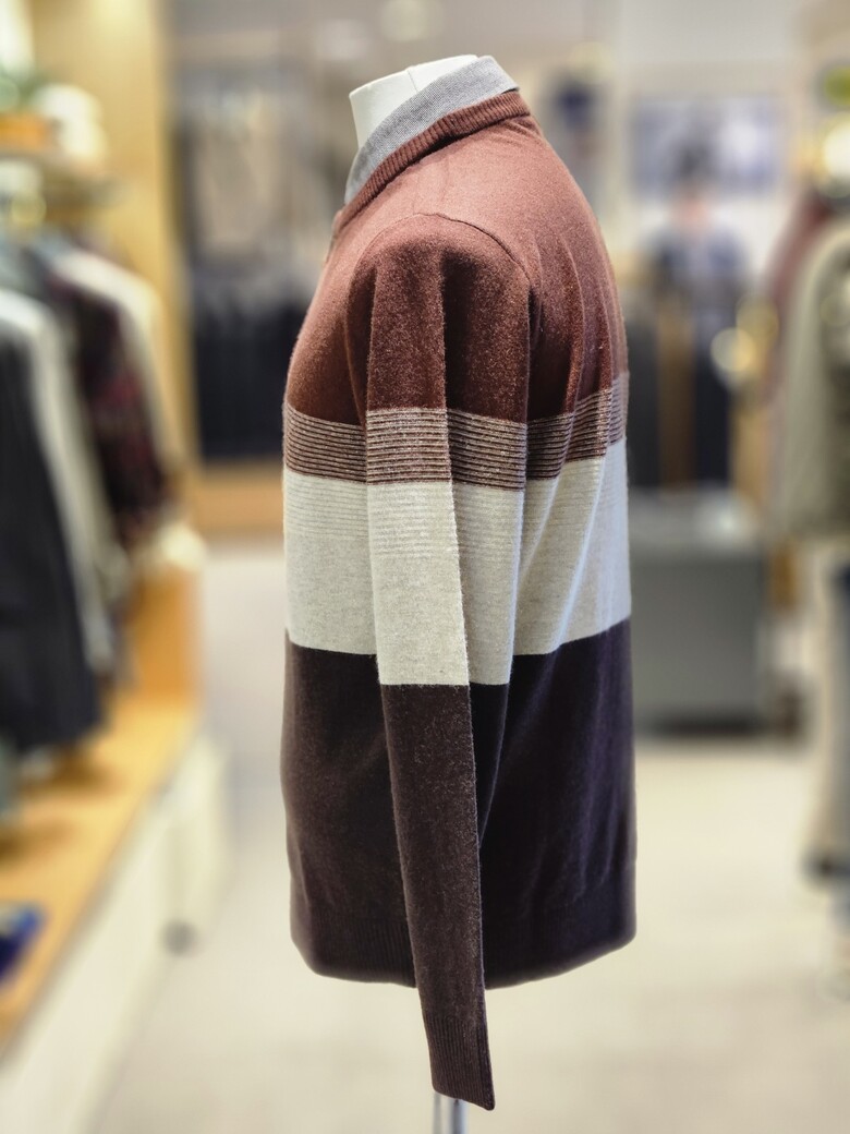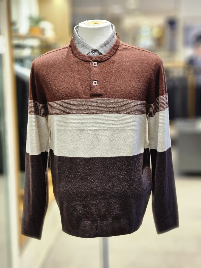 다양한 컬러감을 블럭 디자인의 남성 니트.