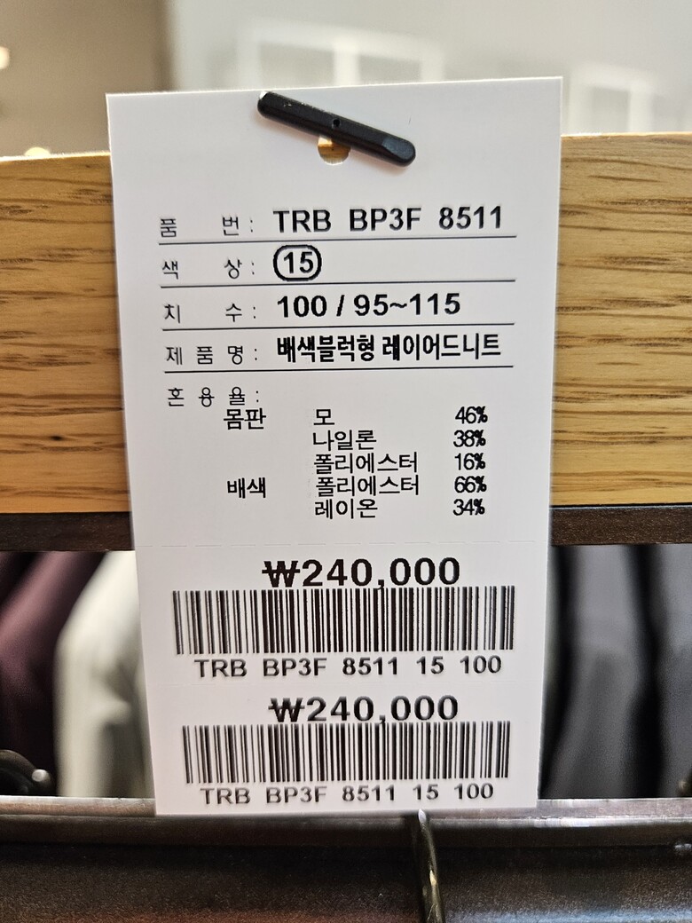 | 1. 제품 소재 (섬유의 조성 또는 혼용률을 백분율로 표시, 기능성인 경우 성적서 또는 허가서) | 모46%나일론38%폴리에스터16% |