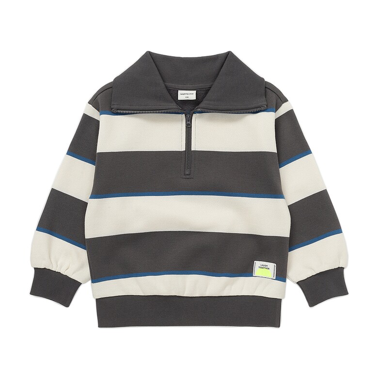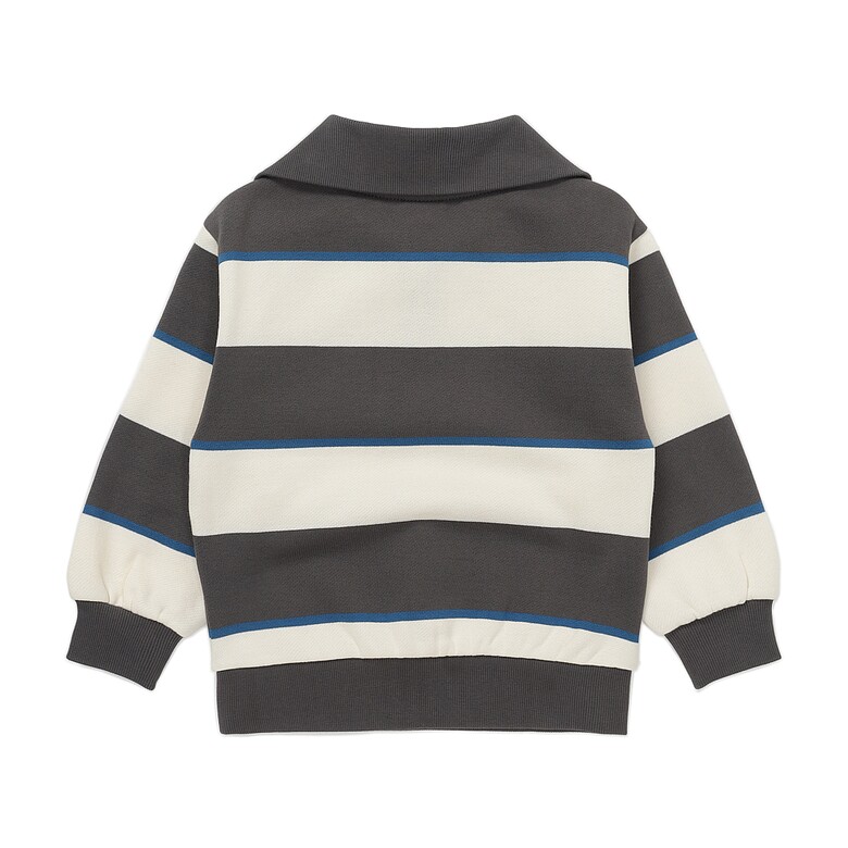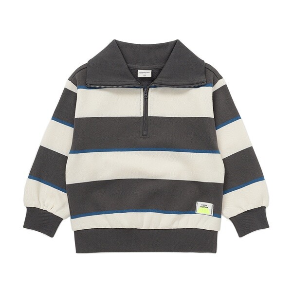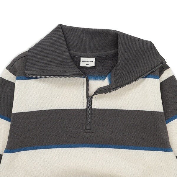 멀티 스타일링이 가능한 스트라이프 기모 반집업입니다.