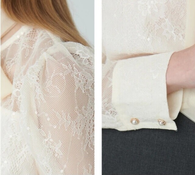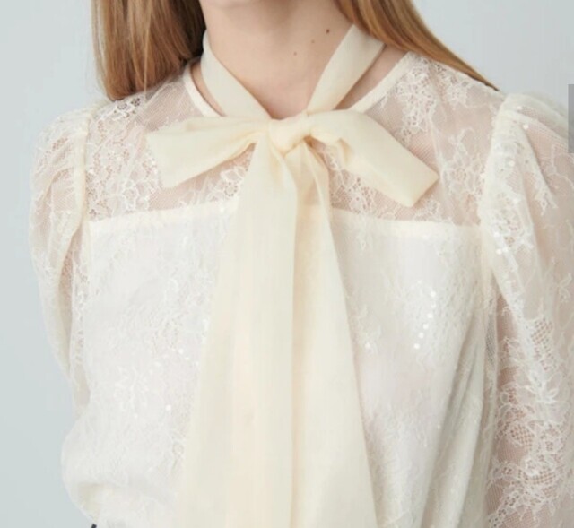 리본 패턴 시스루 스팽글 블라우스S243b257