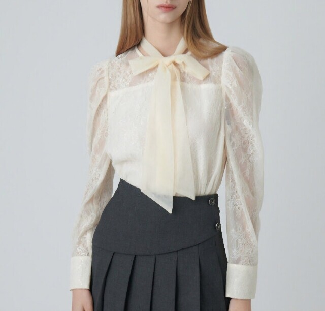 리본 패턴 시스루 스팽글 블라우스S243b257
