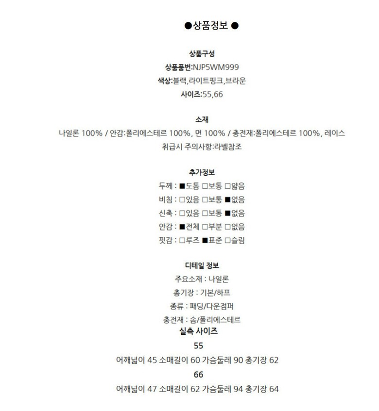 - #다운점퍼 #숏패딩 #NJP5WM999 #웰론패딩