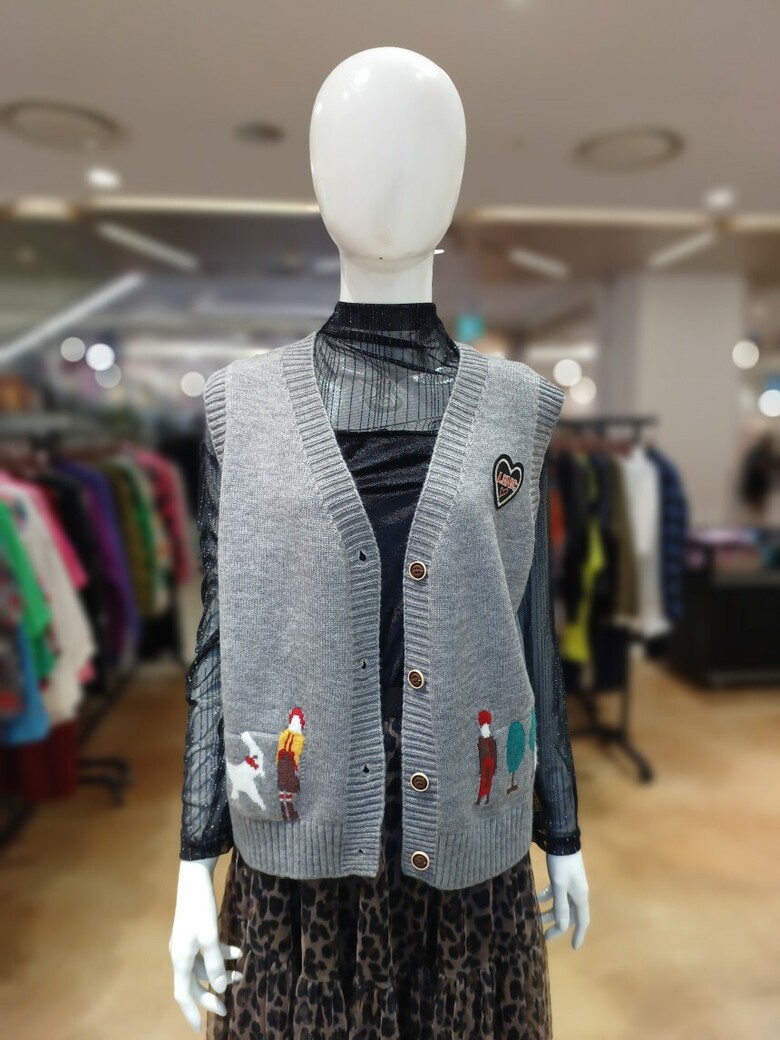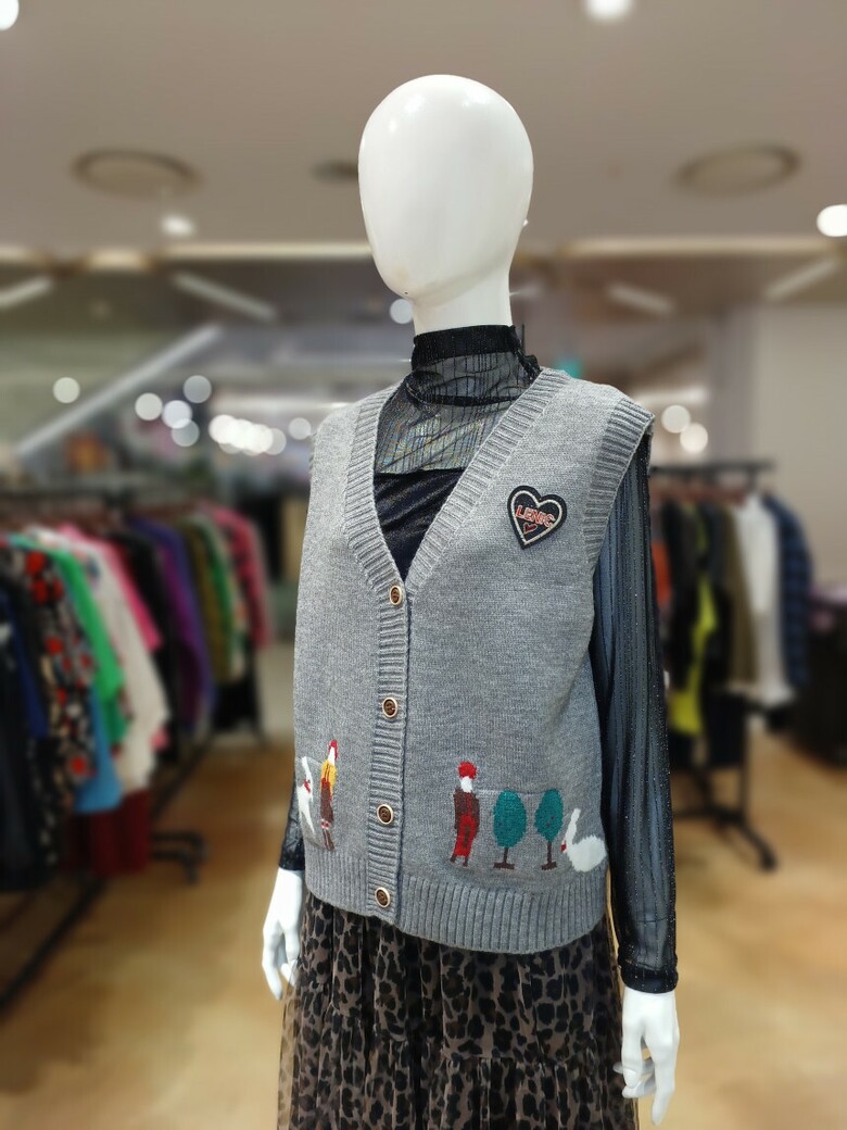 르니앤맥코이 자수패턴 하트브로치 니트조끼MM11KV005