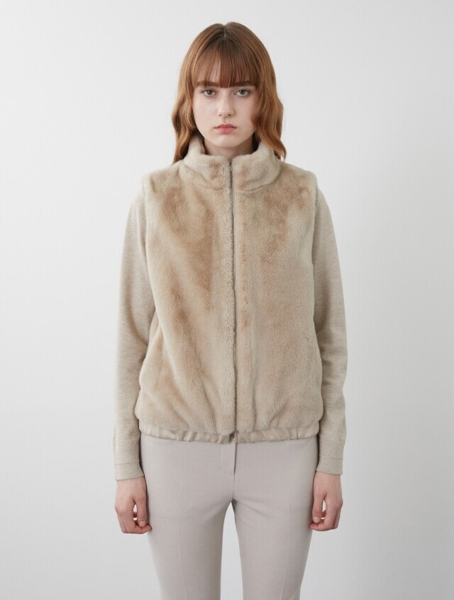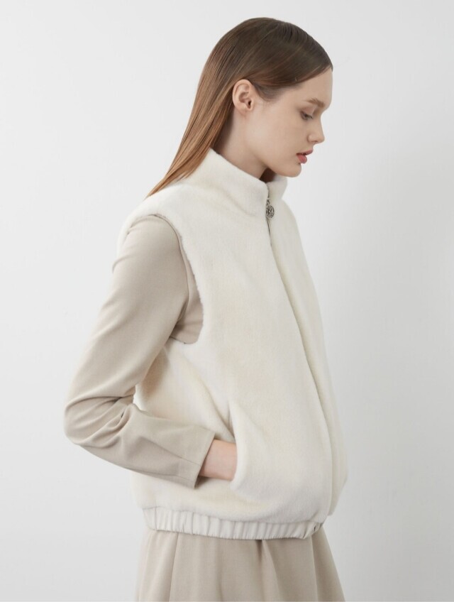 (올리비아로렌)배색패치인조퍼베스트VOBJF3W9361