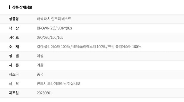 | 6. 세탁방법 및 취급시 주의사항 | 상품상세참조 |