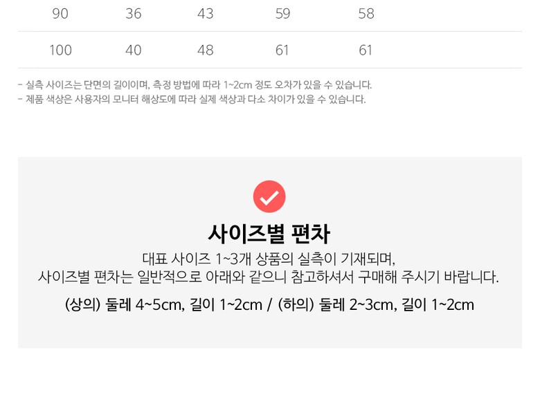 3. 치수 90사이즈기준실측 : 어깨36cm, 가슴43cm, 팔길이59cm, 총길이58cm