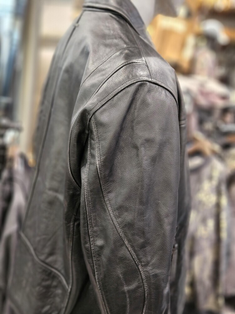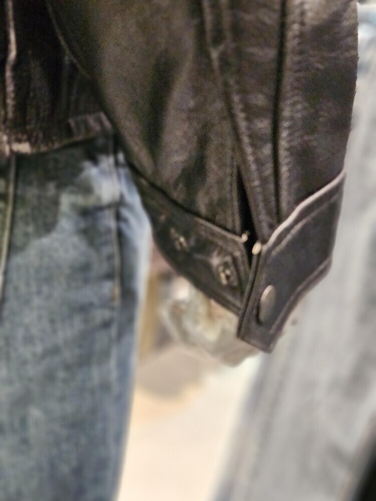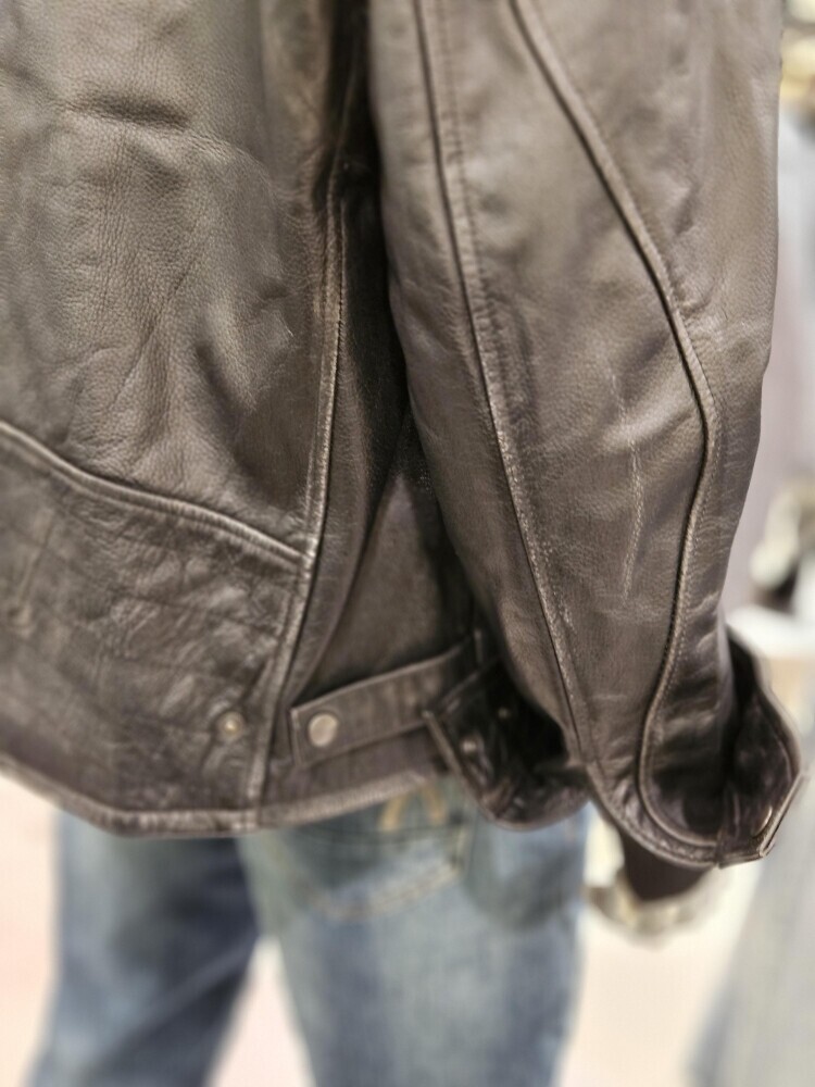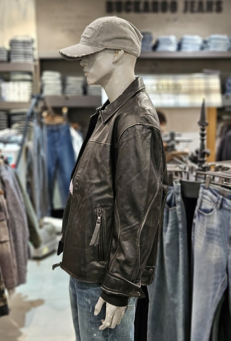 *고급스러운 카우가죽 소재로 만들어진 스탠다드 핏의 카라 가죽 자켓.