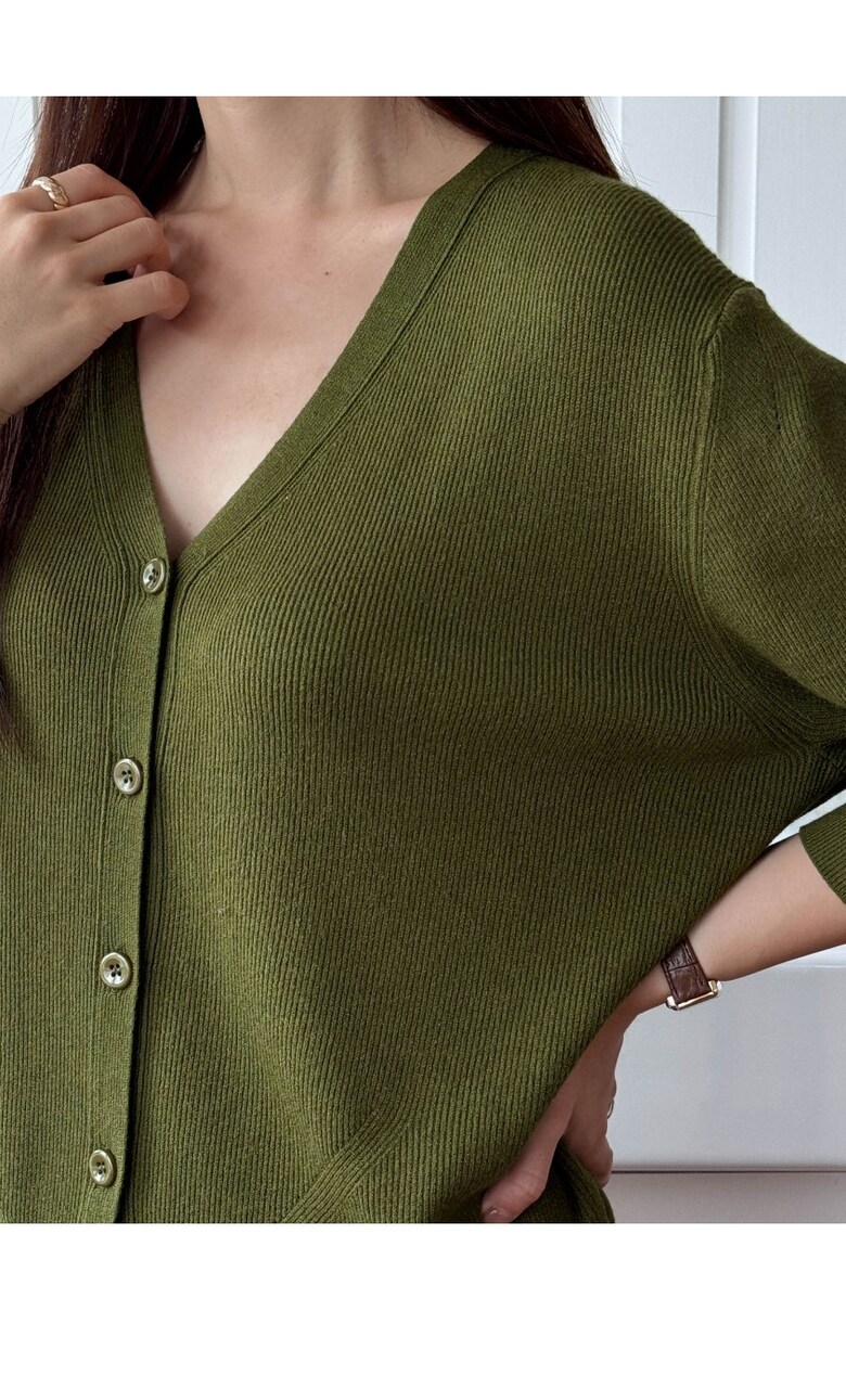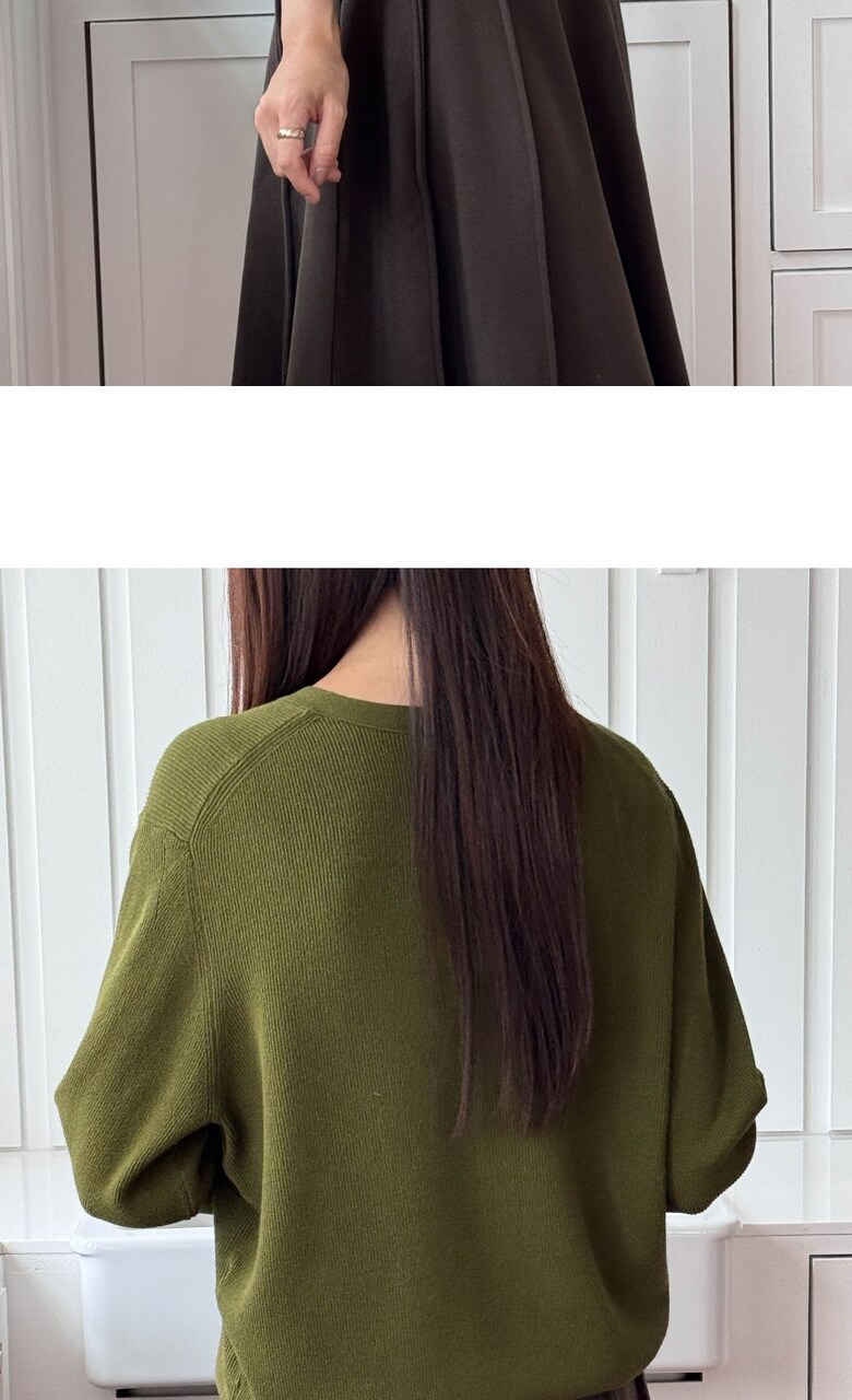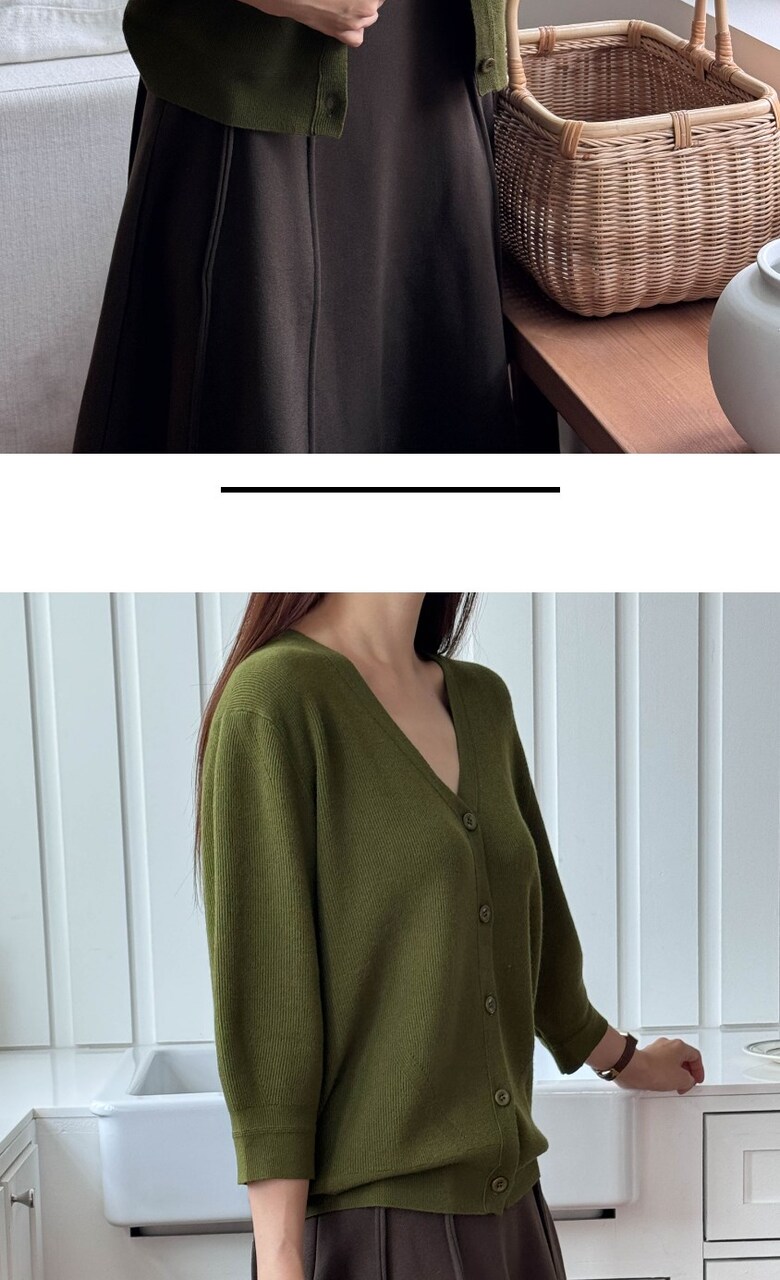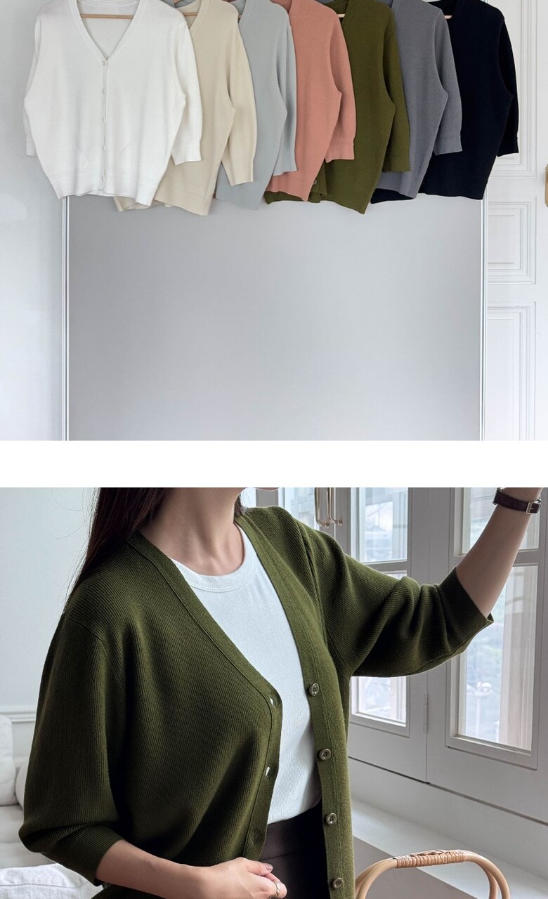 차분한 카키 브이넥 가디건 담백한 감성의 데일리 니트룩