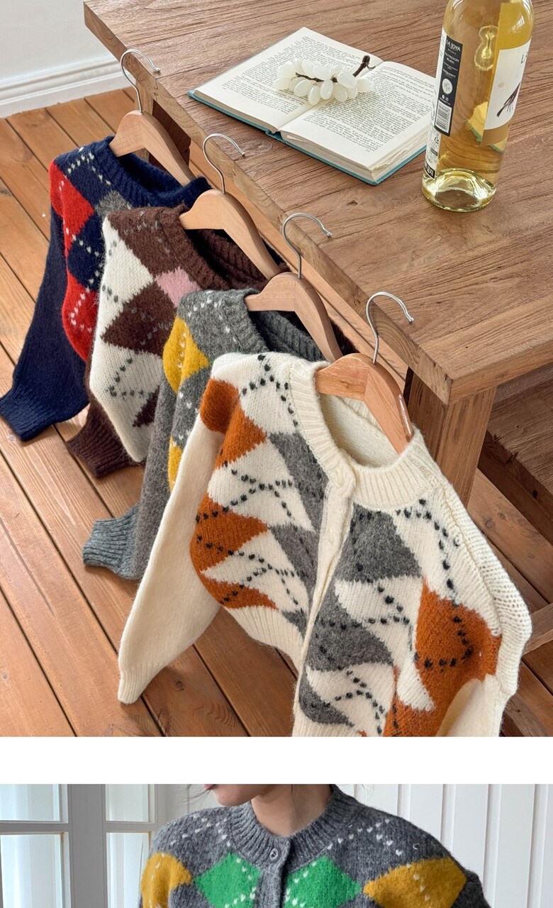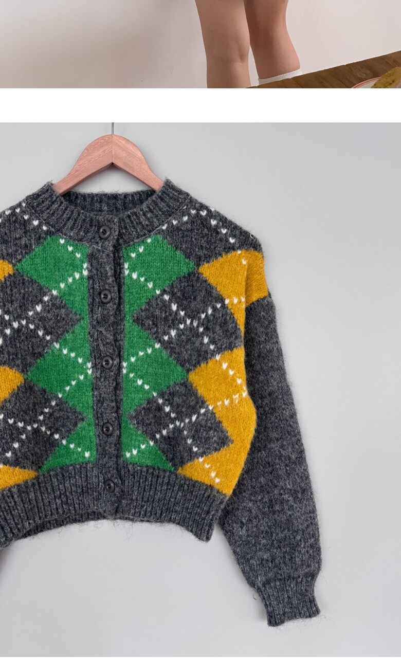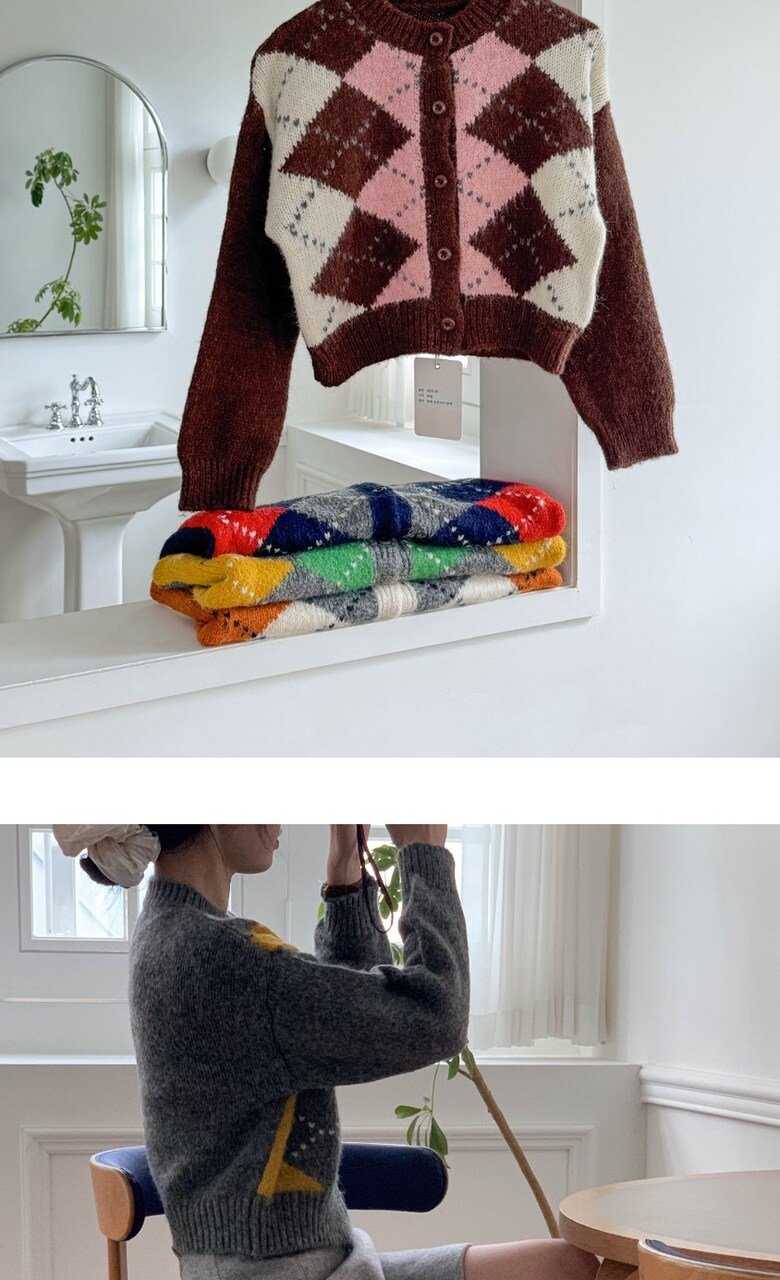 포근한 아가일 패턴 가디건 감성컬러로 완성하는 데일리 니트룩