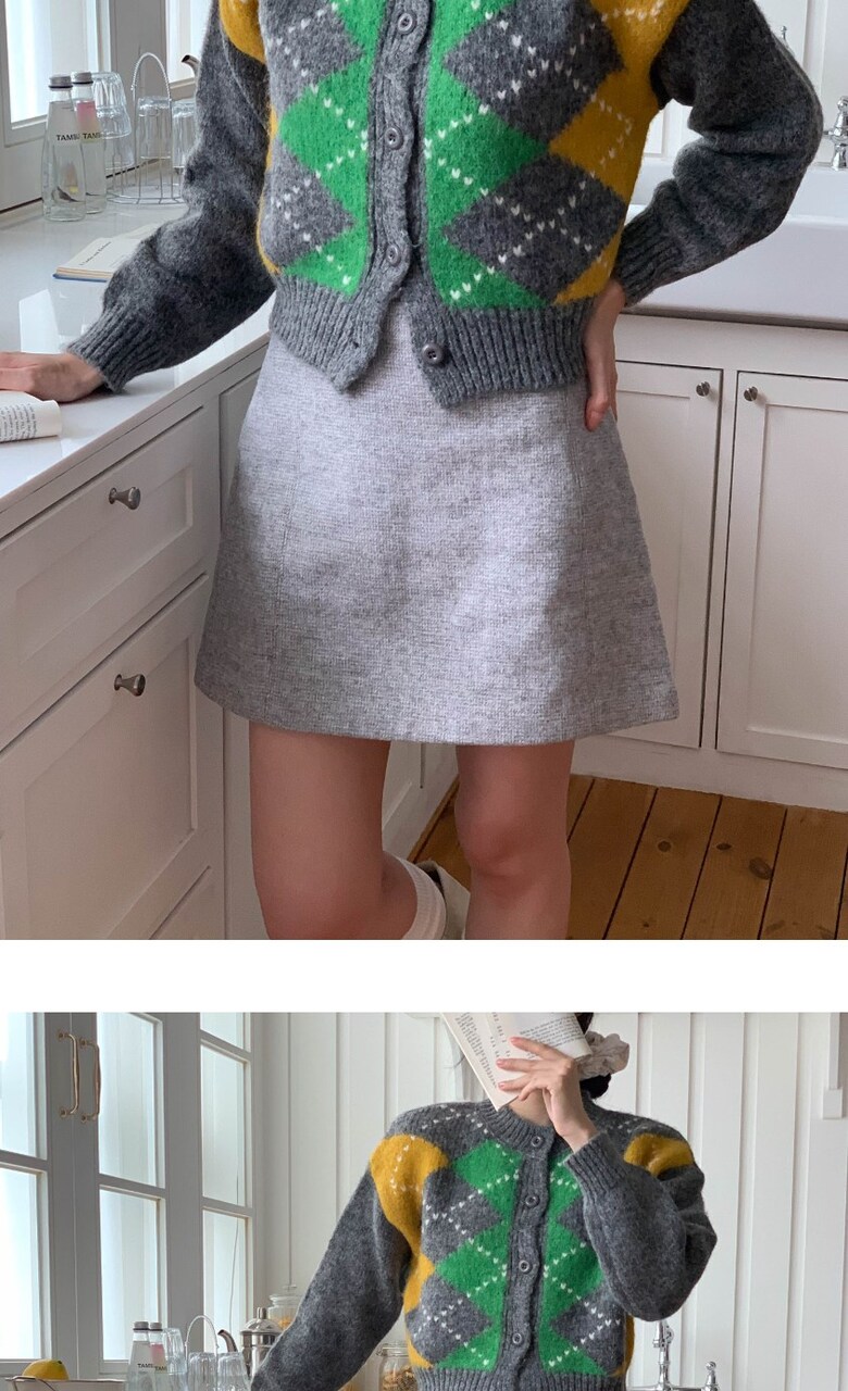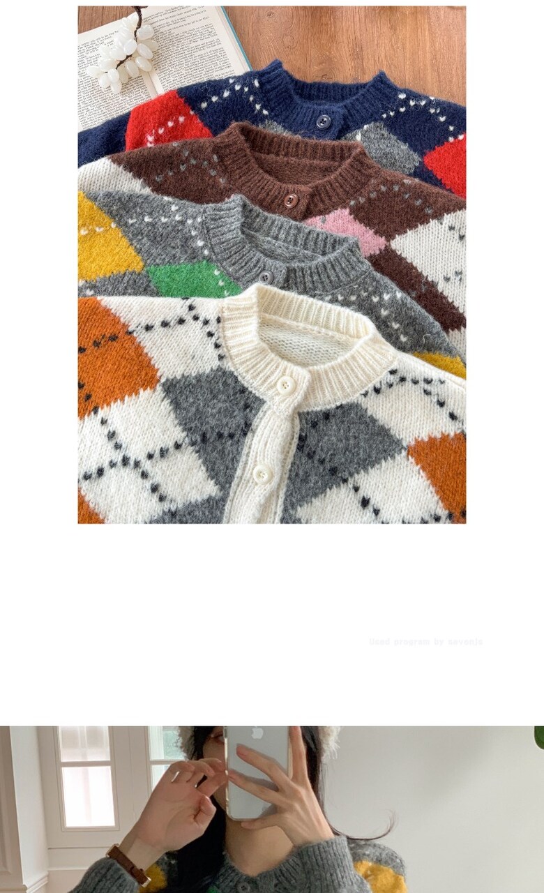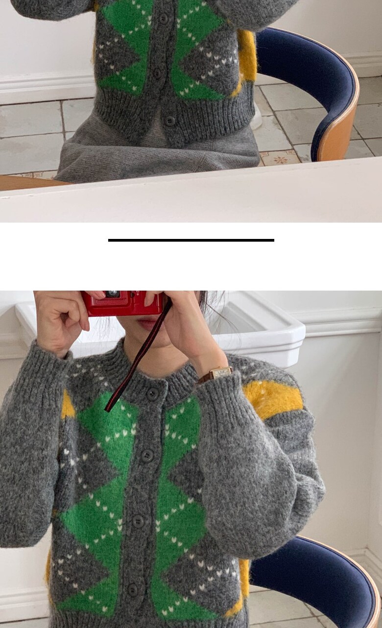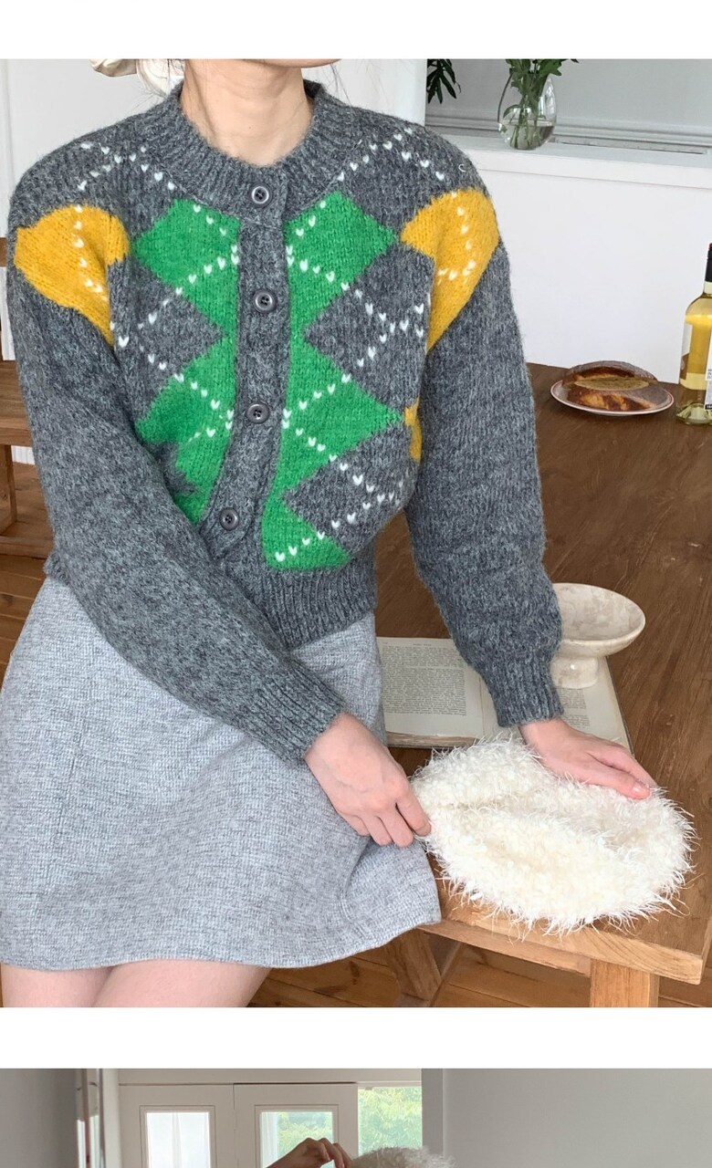 포근한 아가일 패턴 가디건 감성컬러로 완성하는 데일리 니트룩
