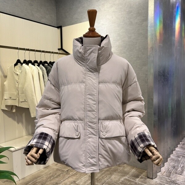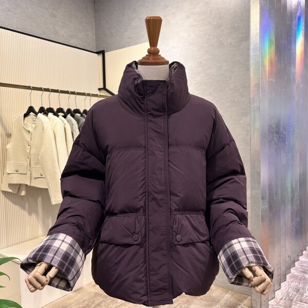 2025년 f/w 신상?체크 배색 하이넥 덕다운 점퍼 입니다.